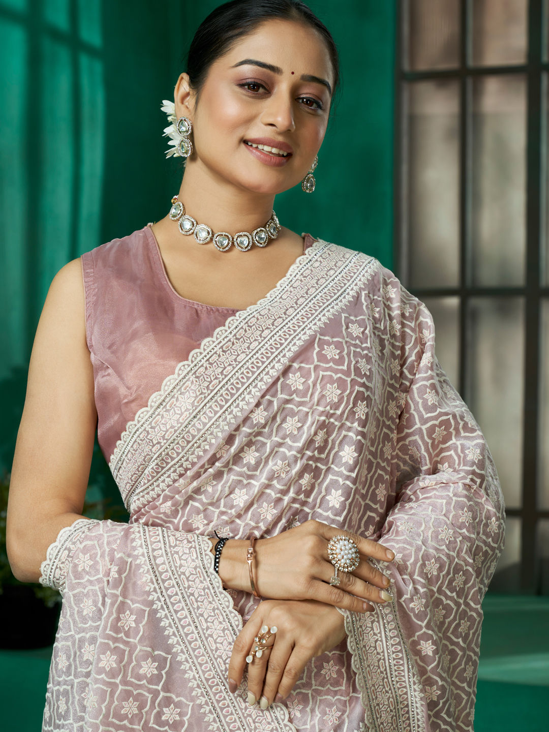 Pink and Majenta color Saree in Crepe Silk fabric with Embroidered, Resham, Stone, Thread work