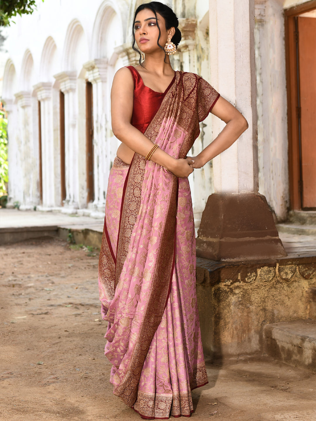 Pink and Majenta color Saree in Chiffon, Crepe Silk fabric with Border, Zari work