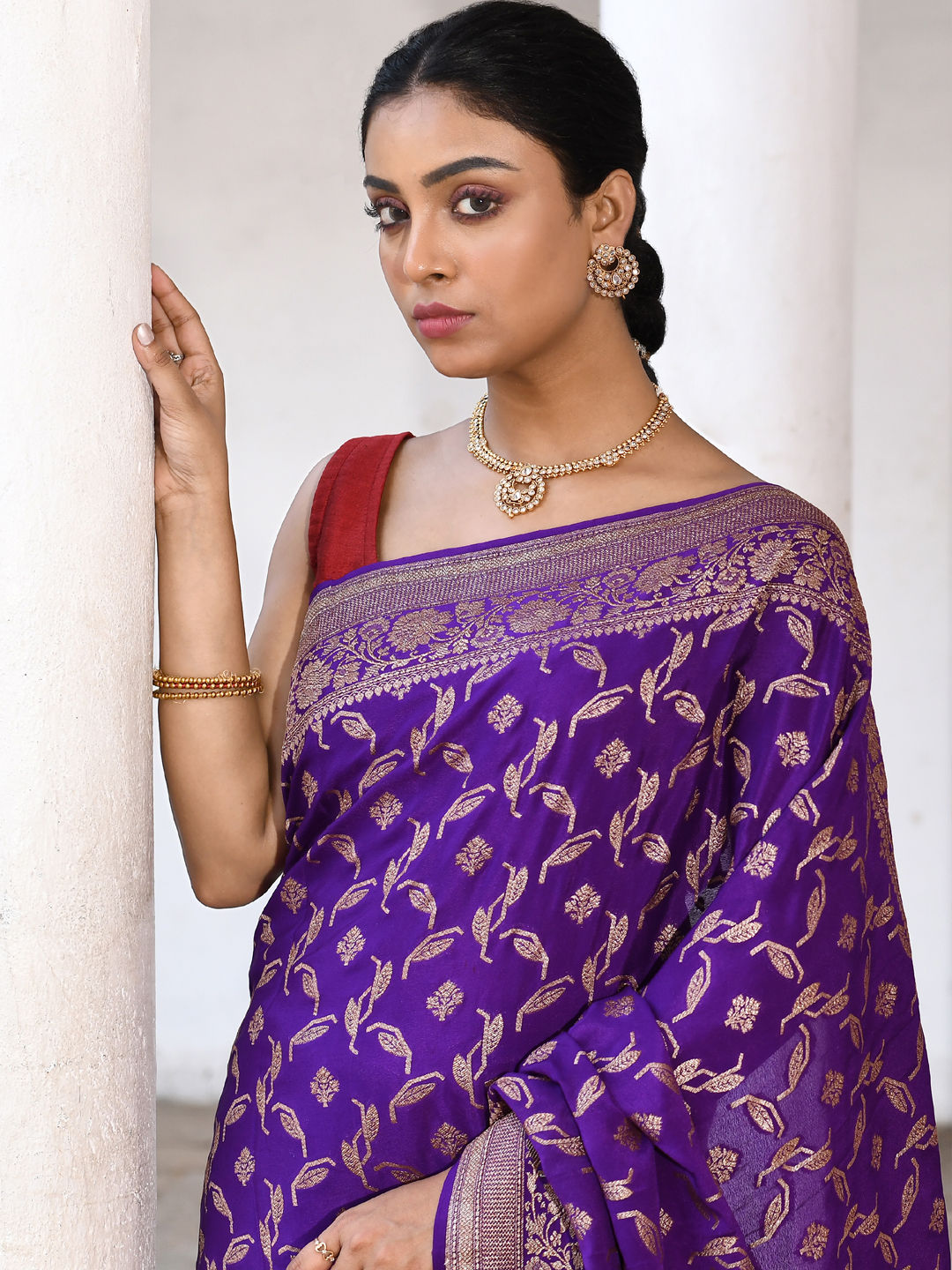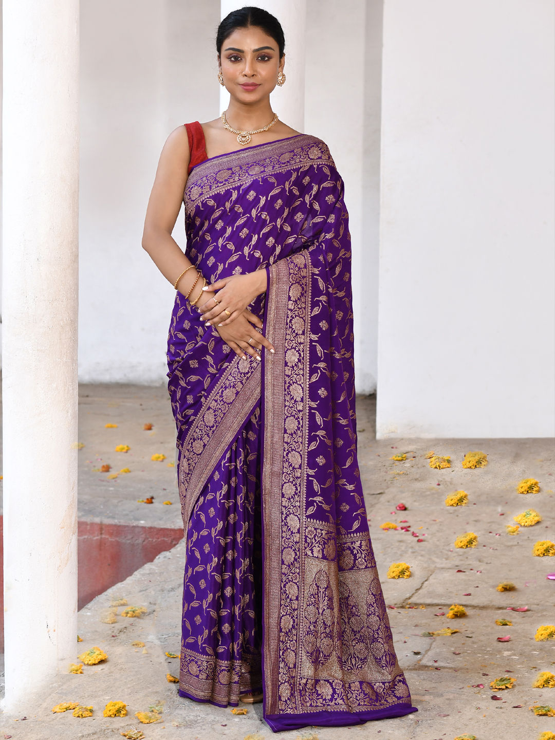 Purple and Violet color Saree in Chiffon, Crepe Silk fabric with Border, Zari work