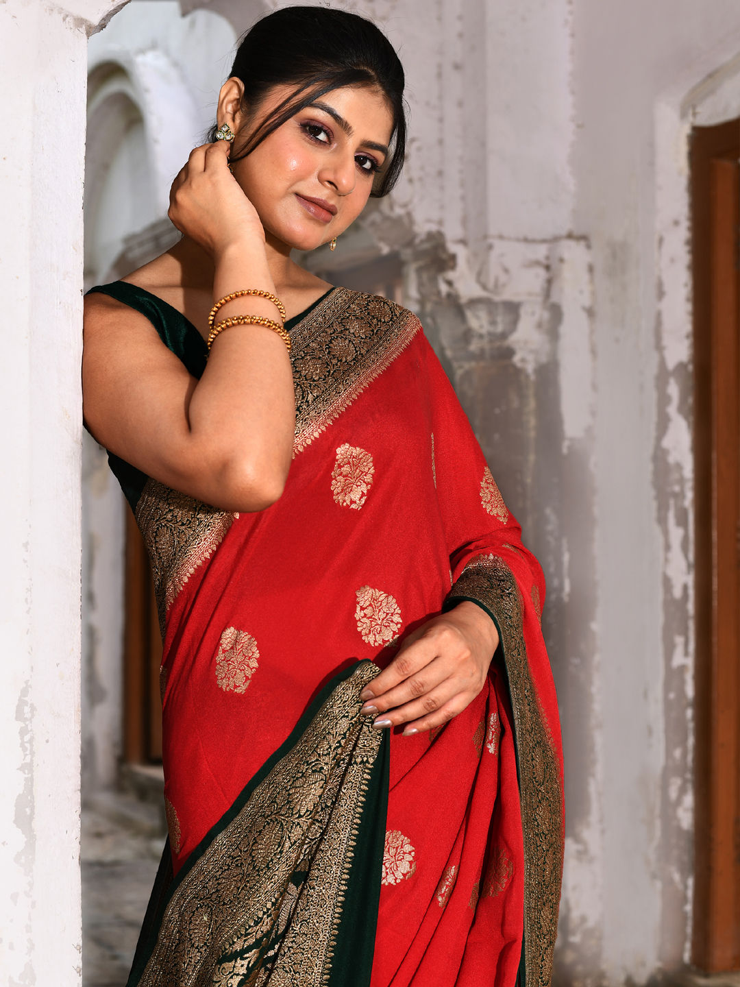 in Red and Maroon with Zari work