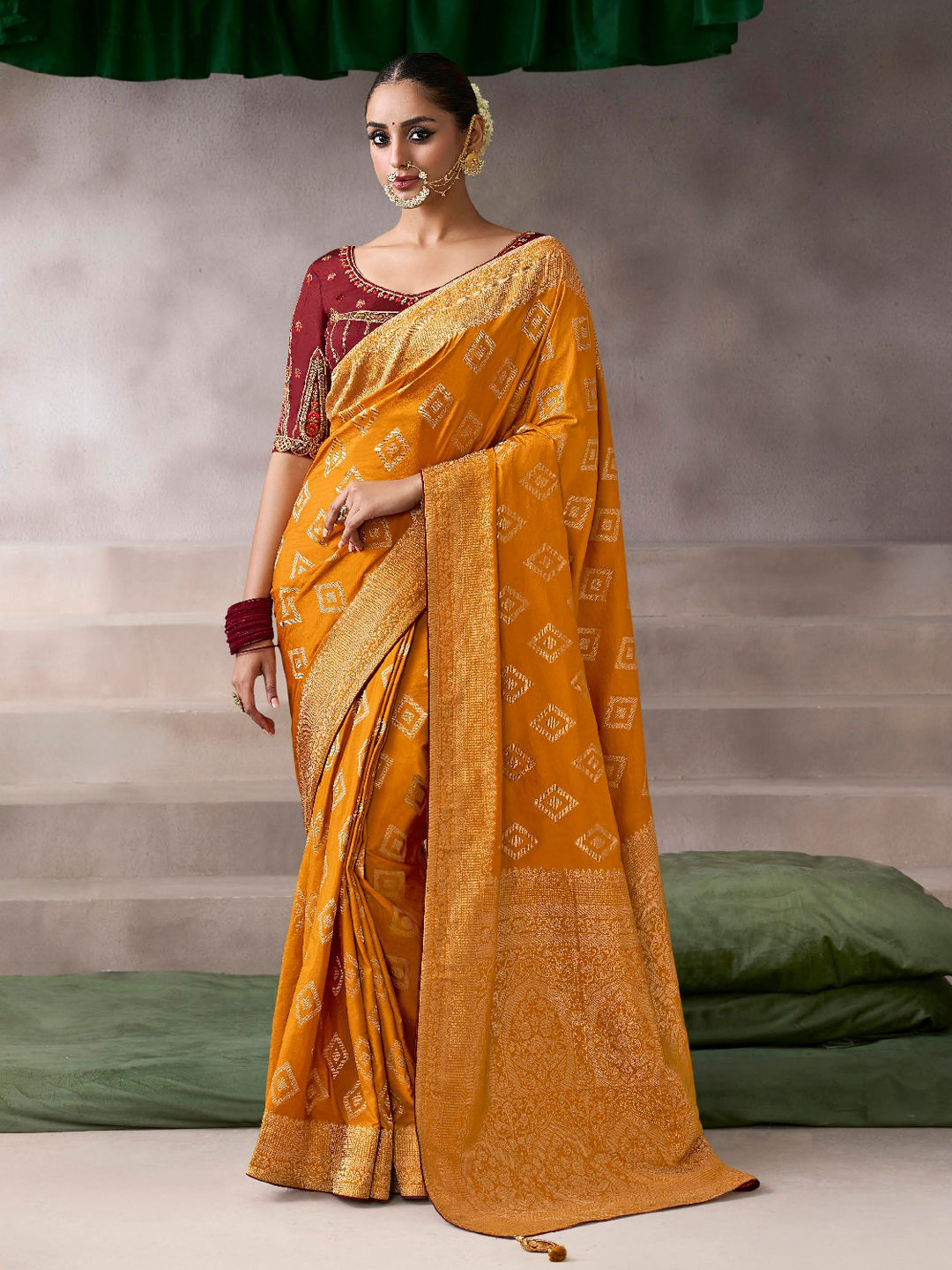 Yellow color Saree in Crepe Silk fabric with Weaving work