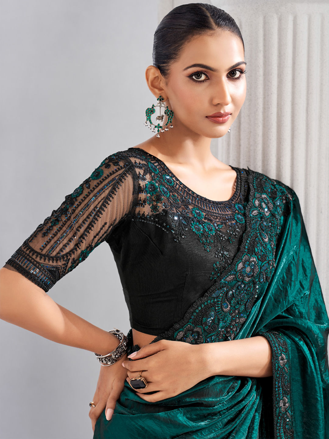 Blue color Saree in Crushed Silk fabric with Embroidered, Sequence work