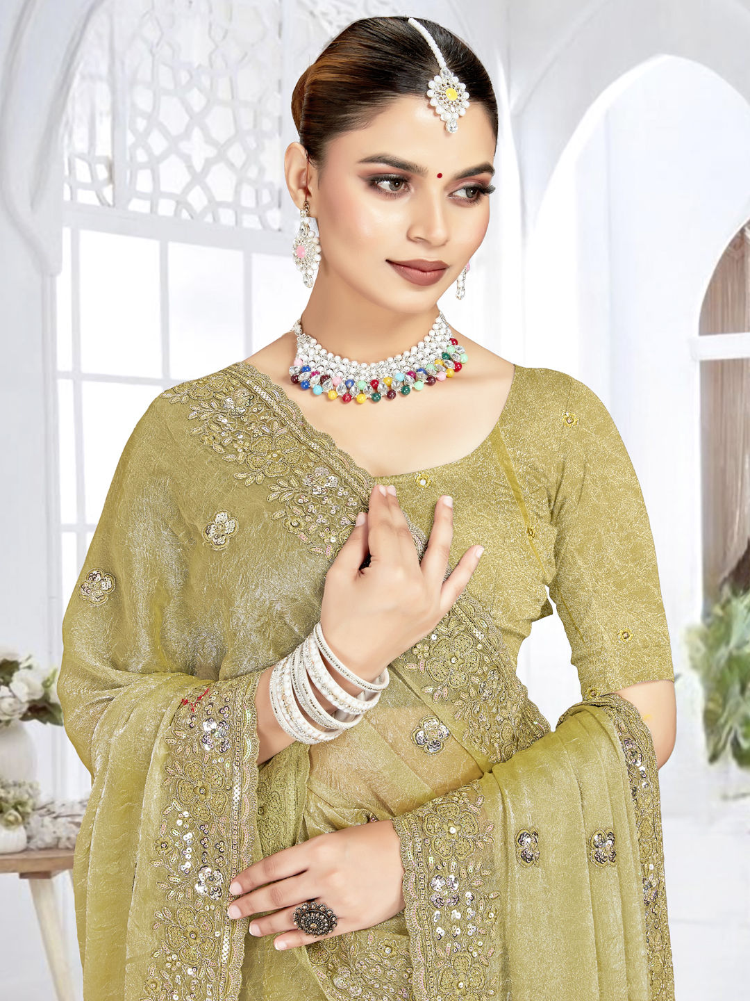 in Green with Embroidered work