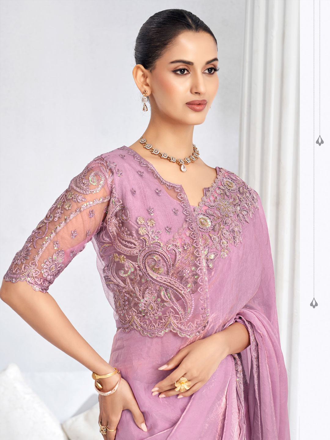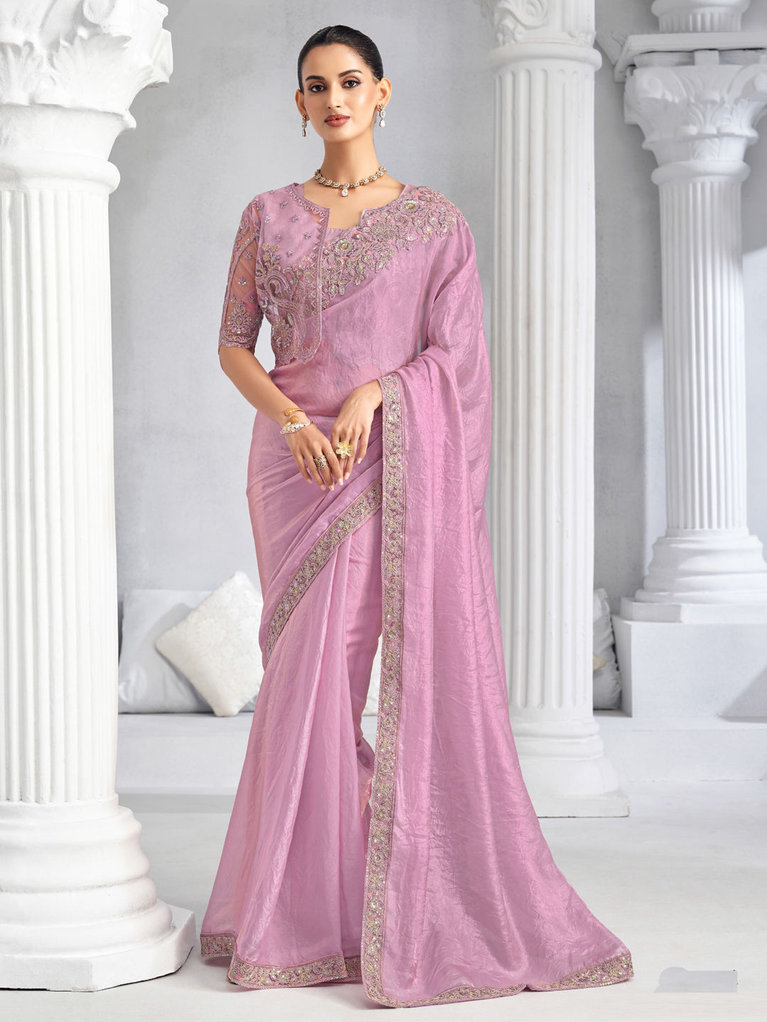 Pink and Majenta color Saree in Crushed Silk fabric with Embroidered, Sequence work