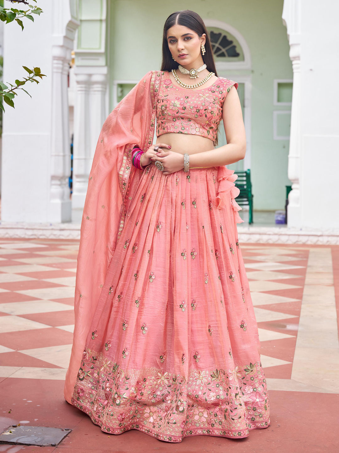 Crushed Silk Engagement Lehenga