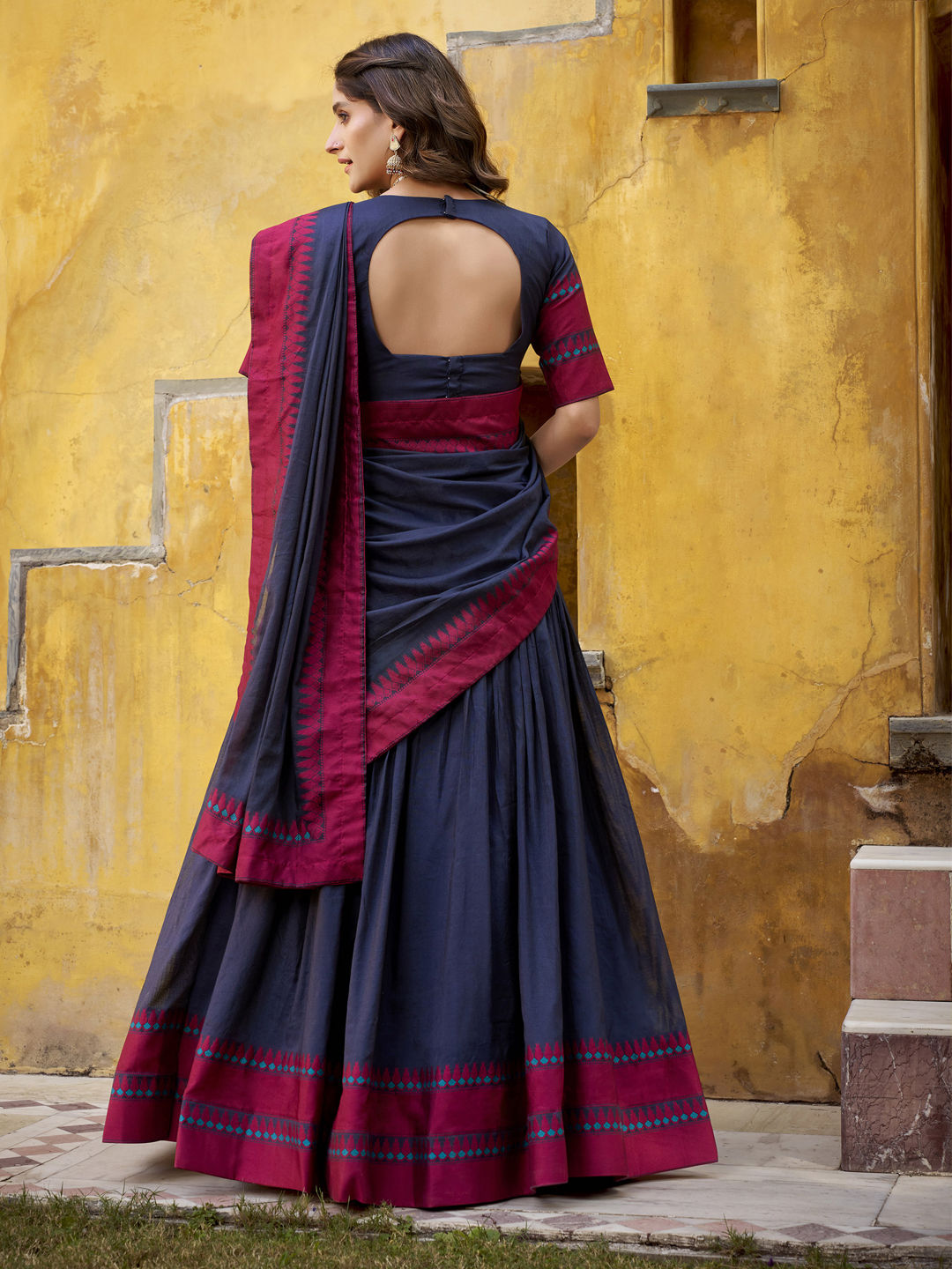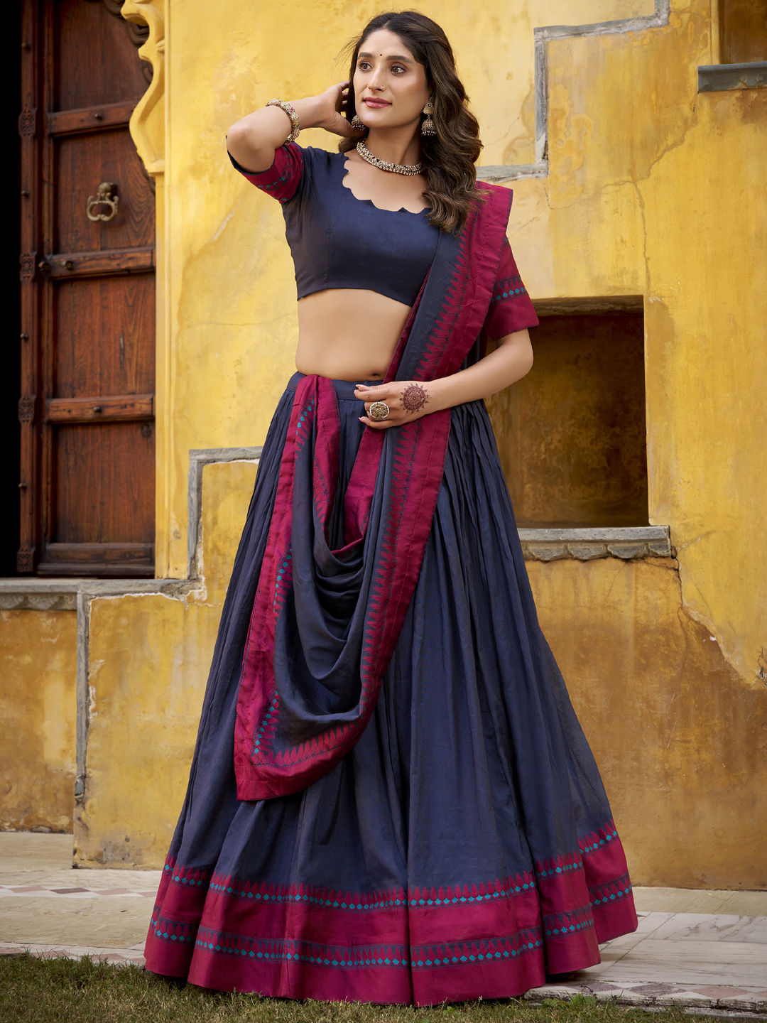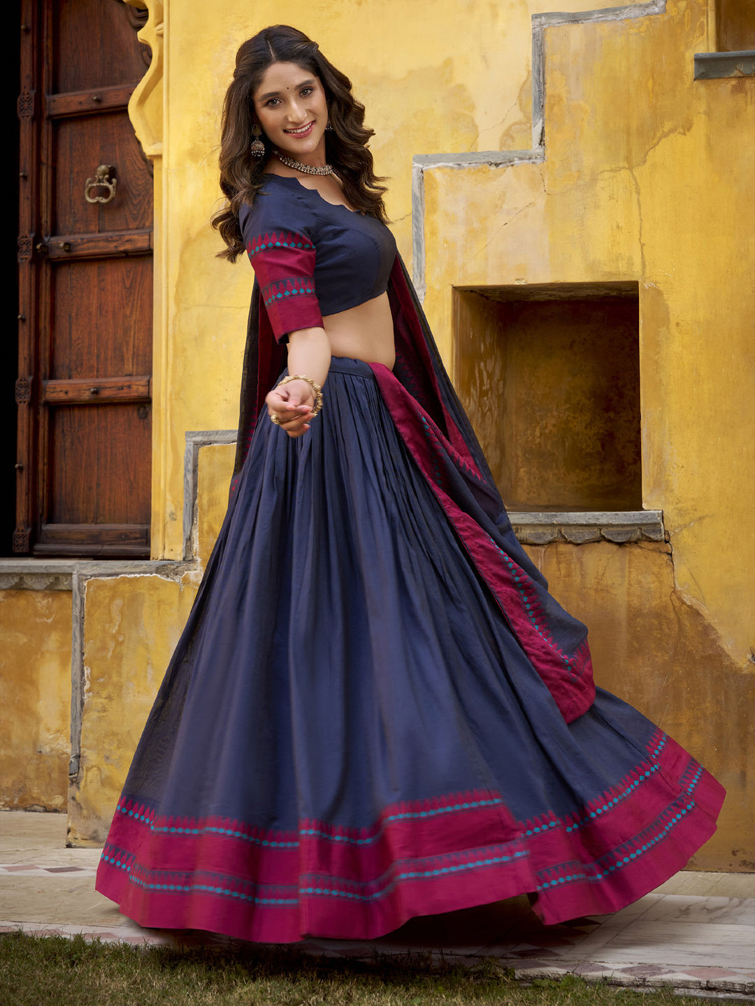 Chanderi Silk Festive Lehenga in Blue with Thread work