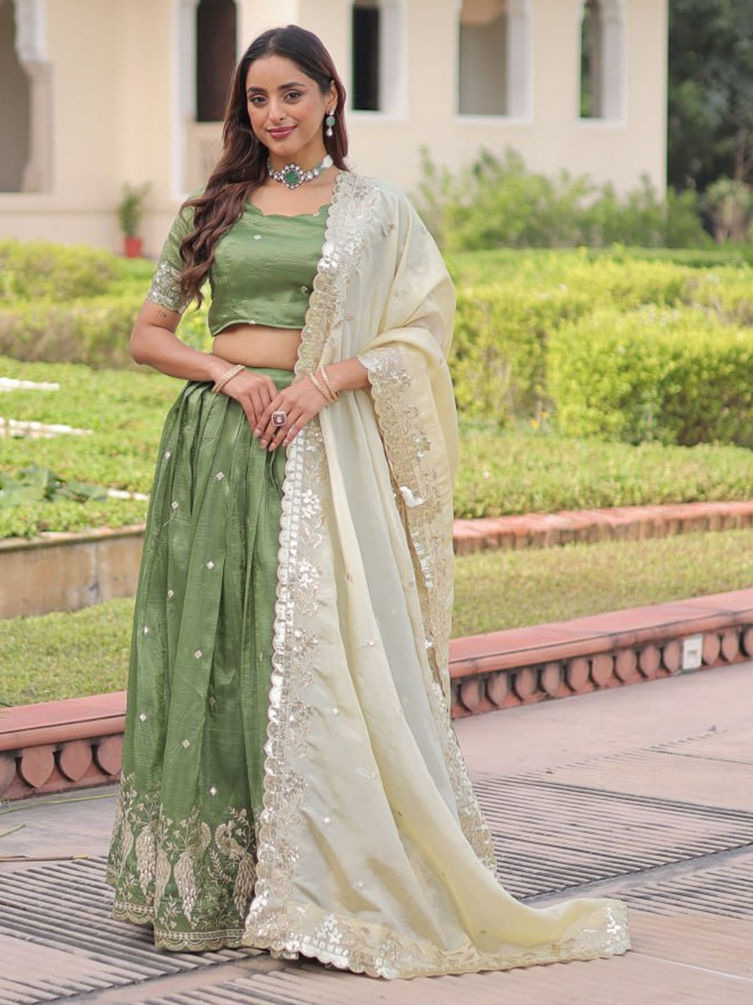 in Green with Embroidered work