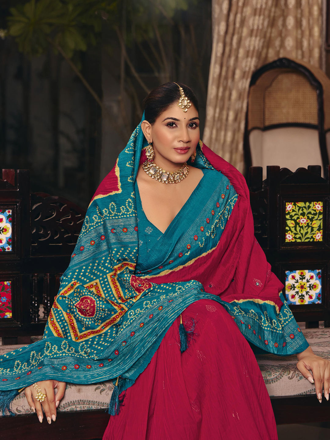in Pink and Majenta with Bandhej work