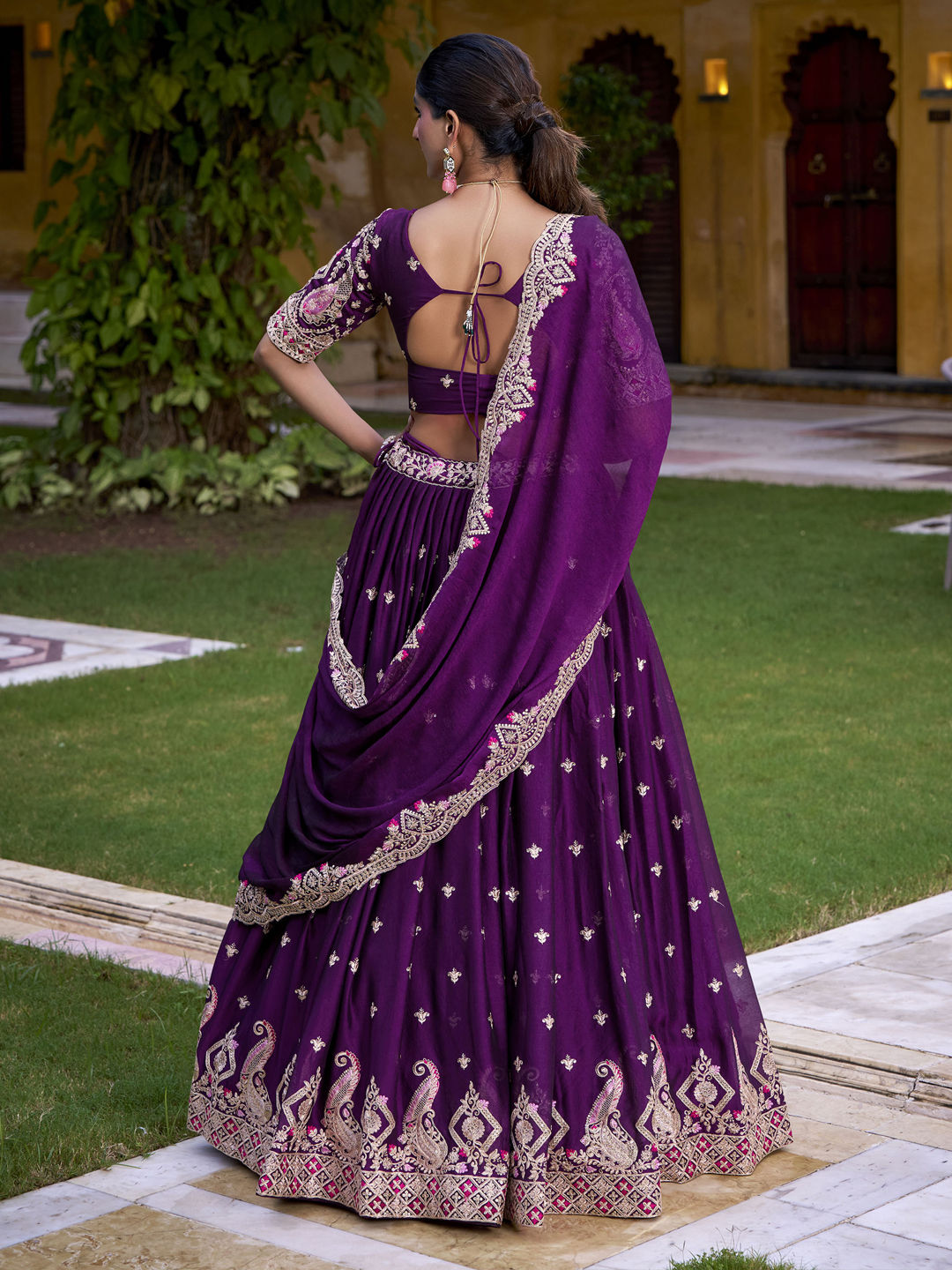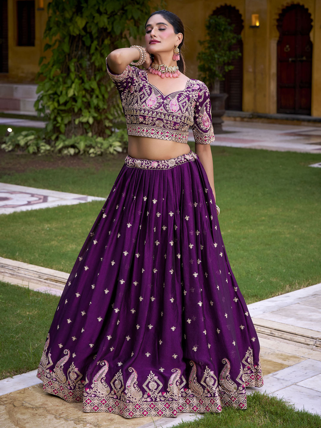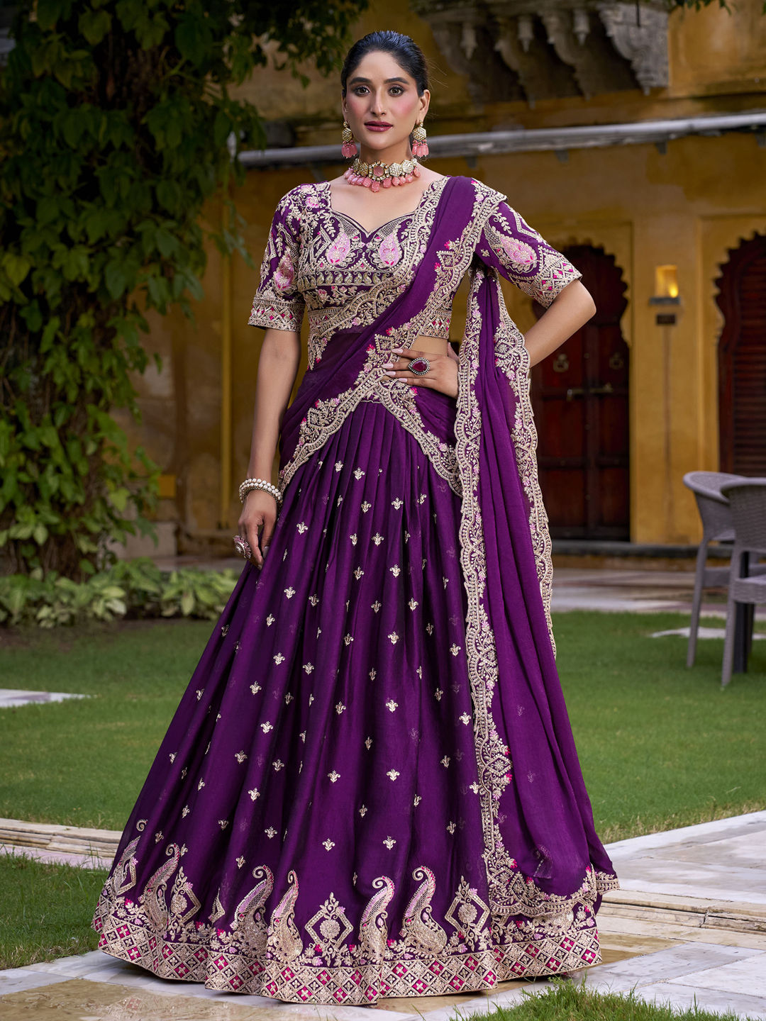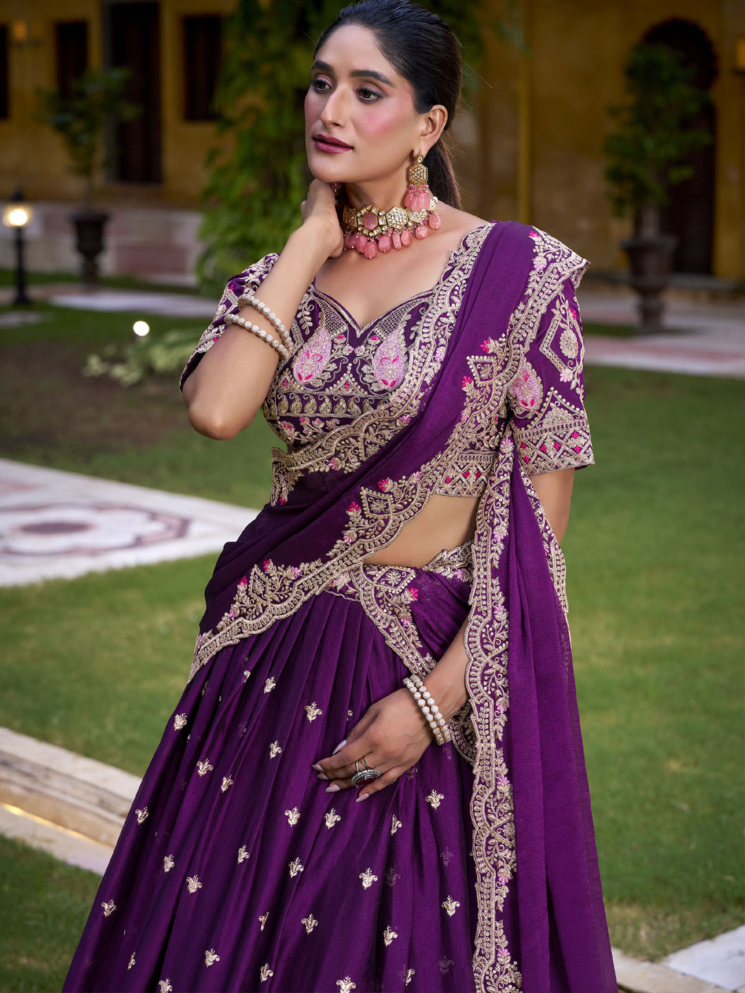 Purple and Violet color Lehenga in Crushed Silk fabric with Embroidered, Sequence work