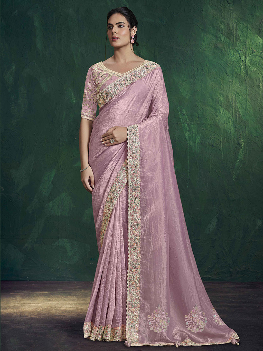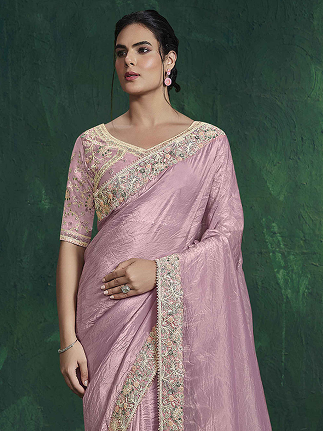 Tissue Reception Readymade Saree in Purple and Violet with Embroidered work