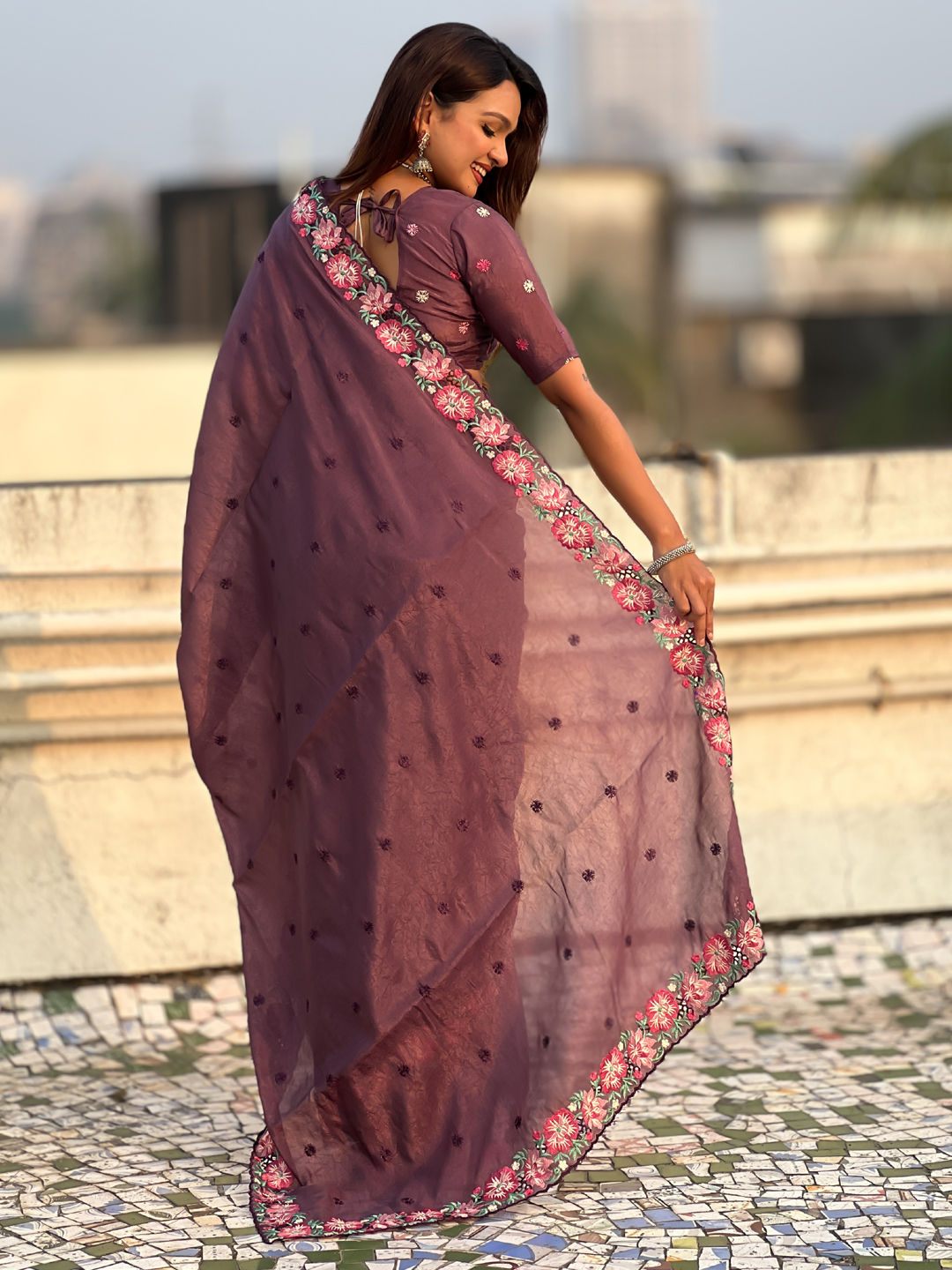 in Purple and Violet with Thread work