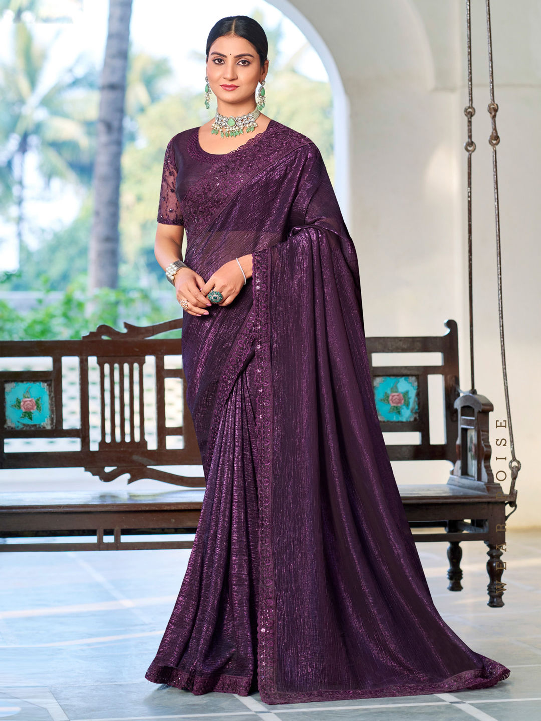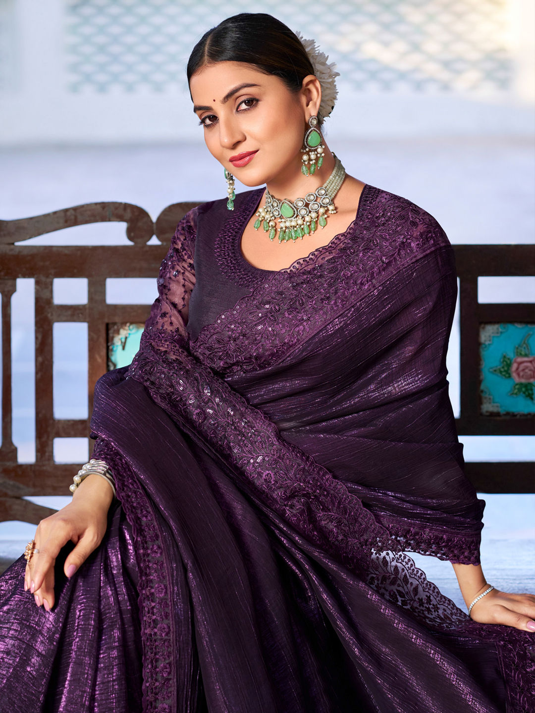 in Purple and Violet with Thread work