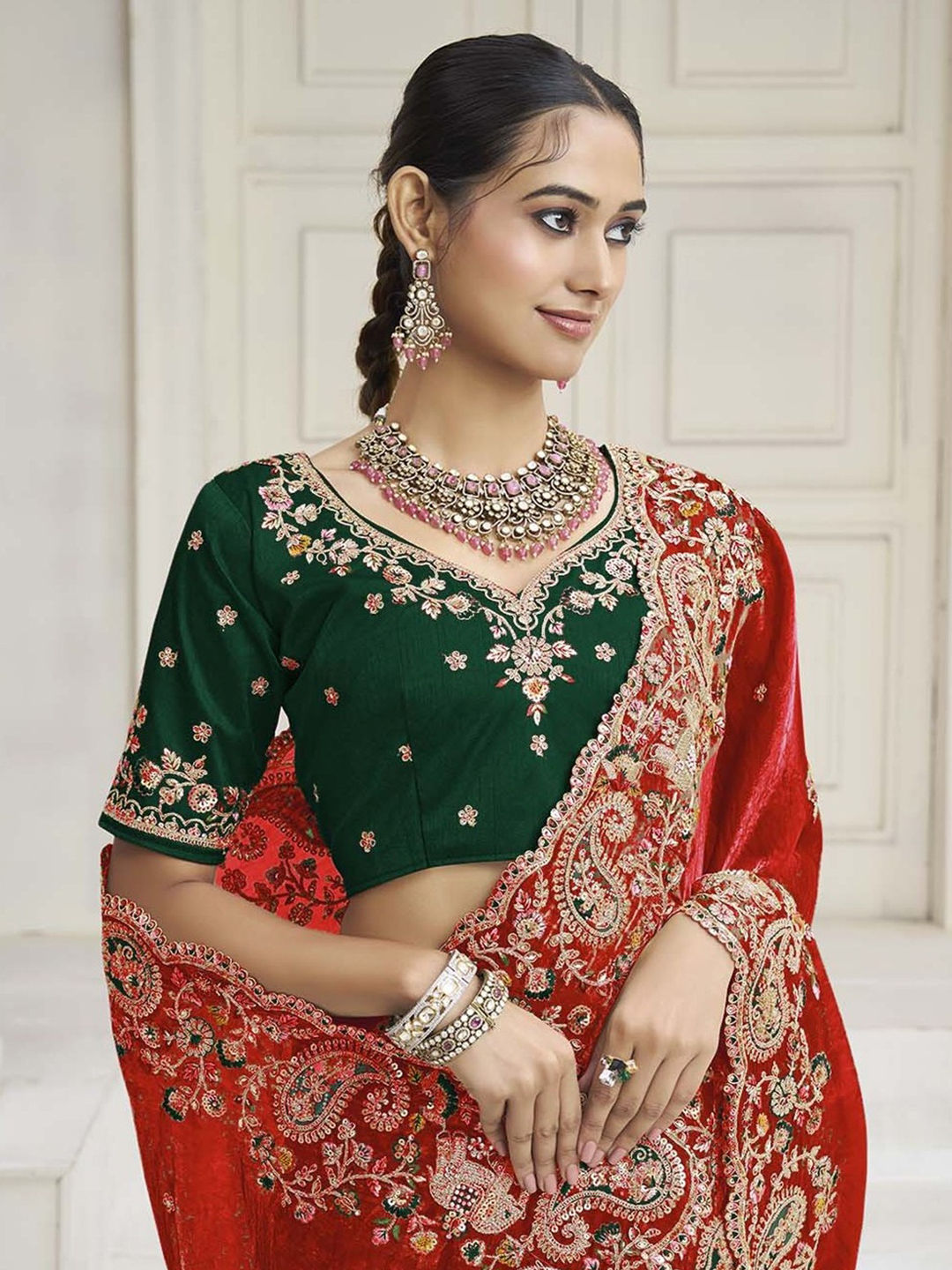 in Red and Maroon with Thread work