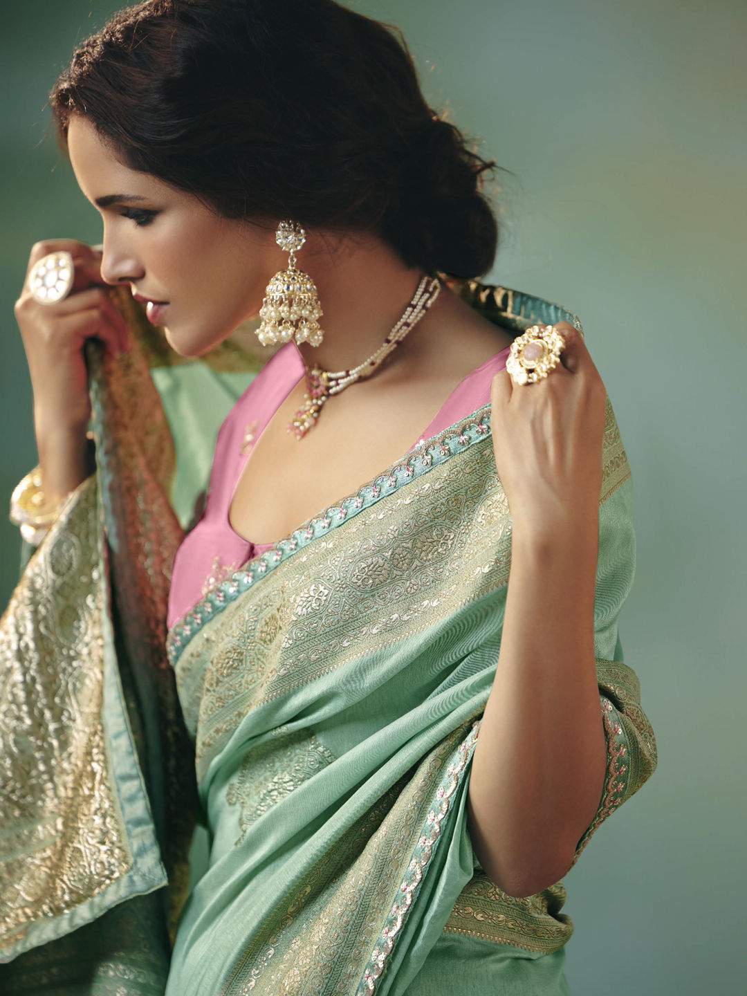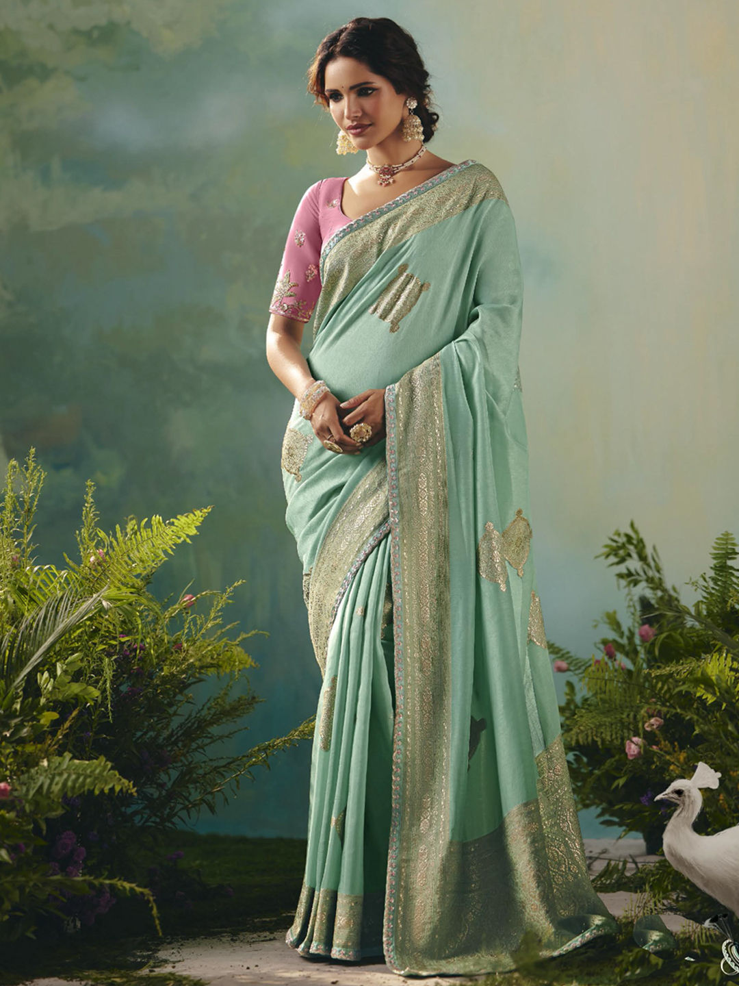 Green color Saree in Dolla Silk fabric with Sequence, Weaving, Zari work