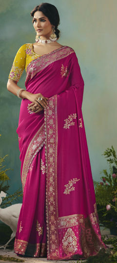 Dolla Silk Traditional Saree in Pink and Majenta with Weaving work