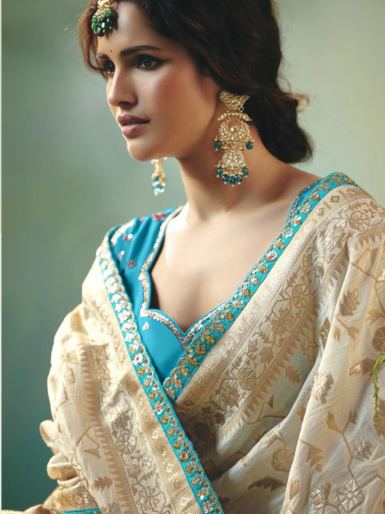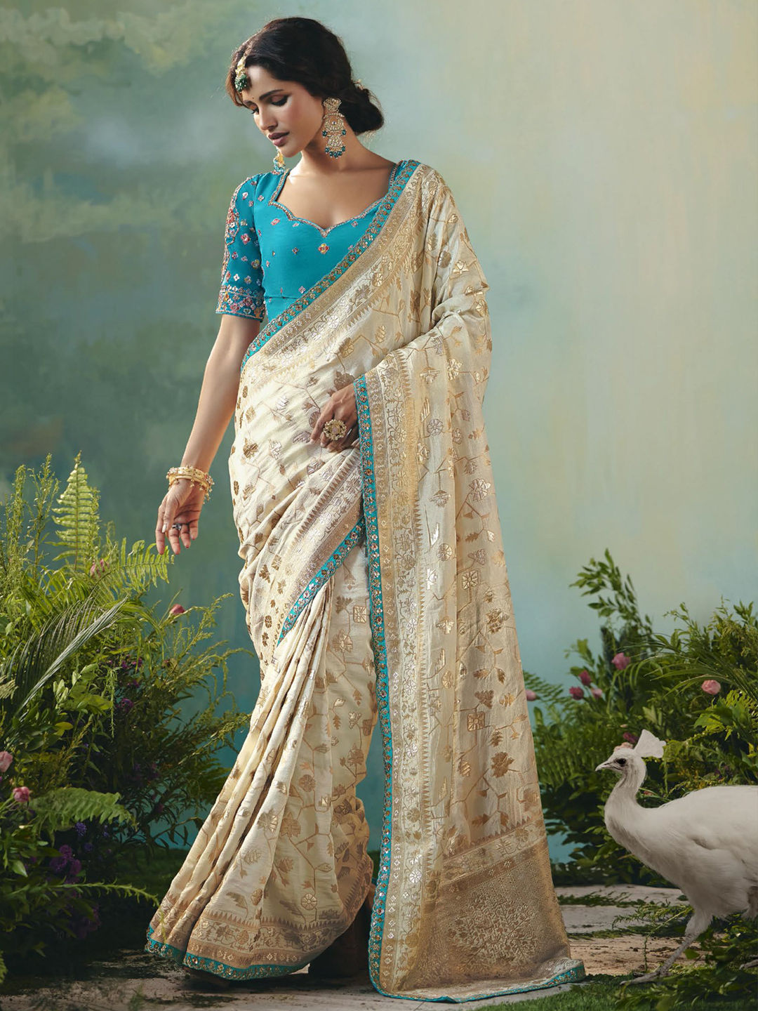 White and Off White color Saree in Dolla Silk fabric with Sequence, Weaving, Zari work