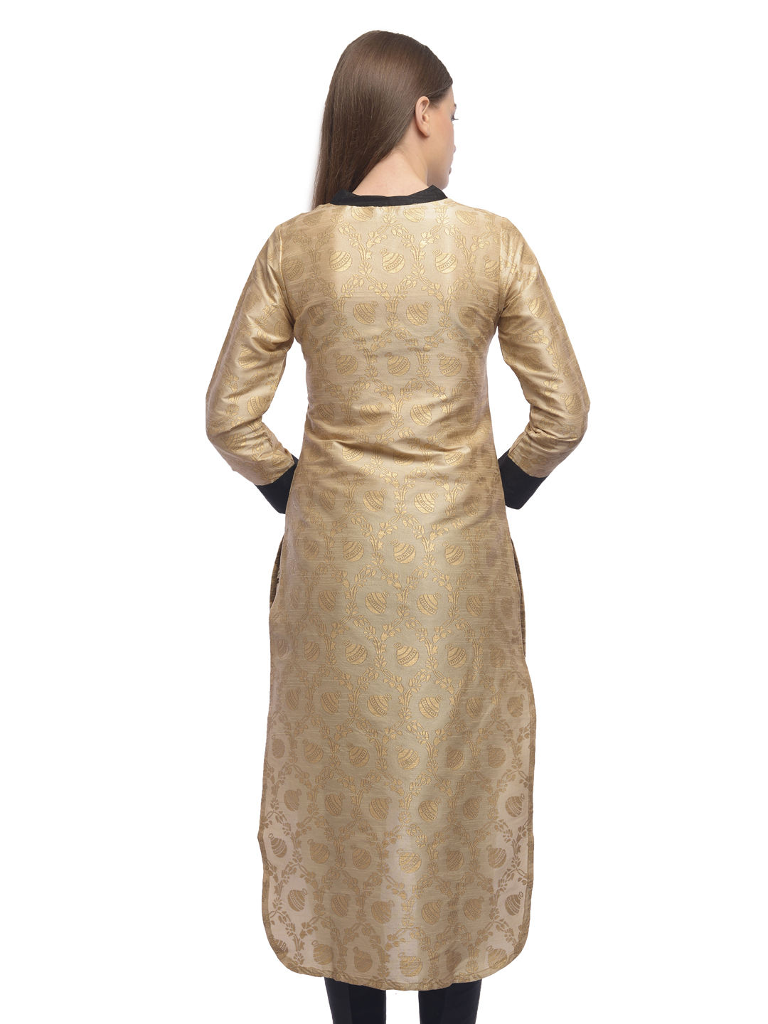 Beige and Brown color Kurti in Dupion Silk fabric with Printed work