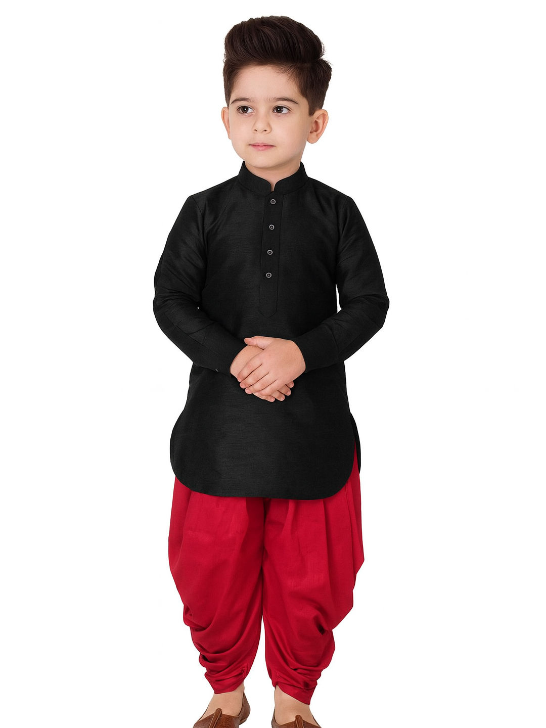 Dupion Silk Festive Boys Dhoti Kurta in Black and Grey with Thread work