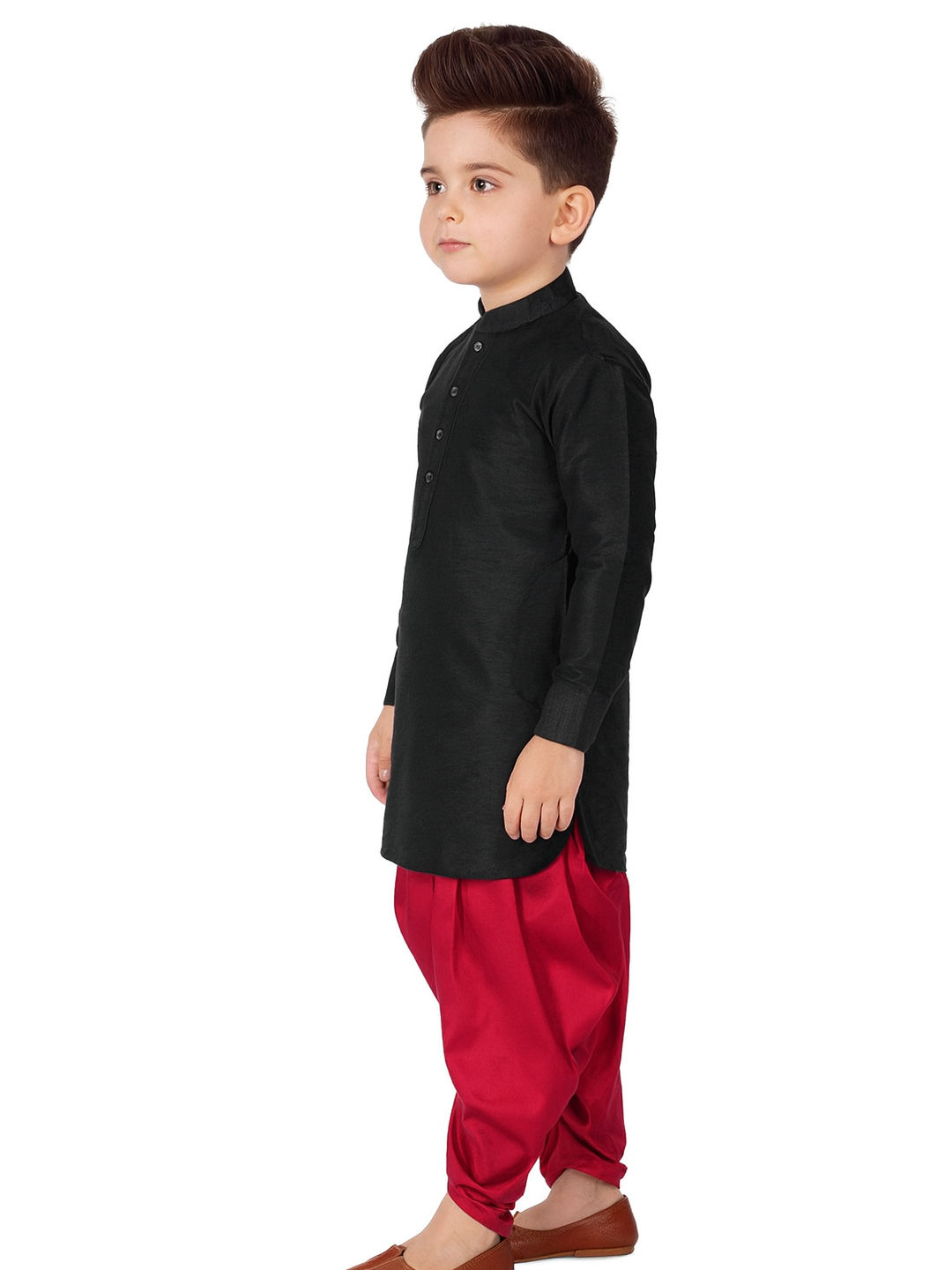 Black and Grey color Boys Dhoti Kurta in Dupion Silk fabric with Thread work