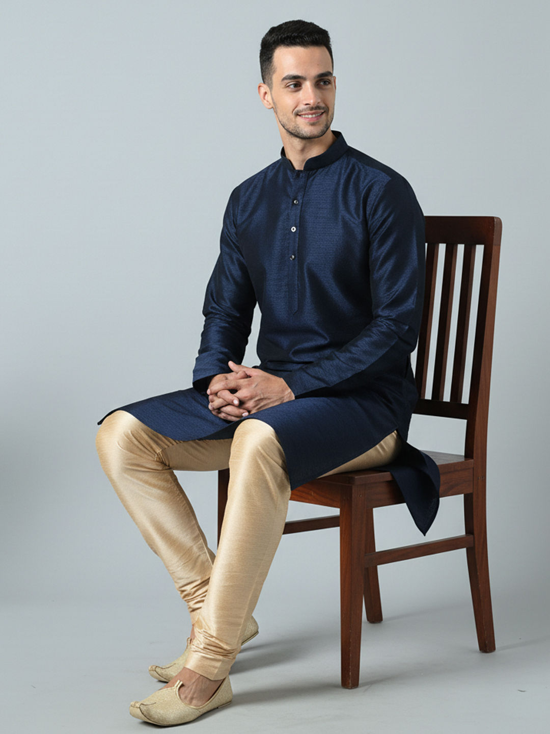 Dupion Silk Festive Kurta Pyjamas in Blue with Embroidered work