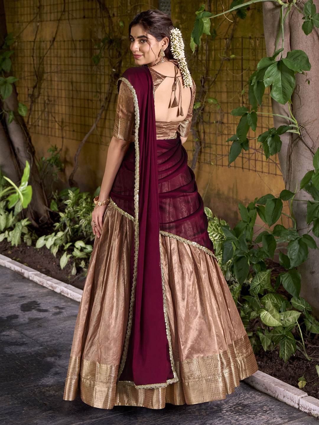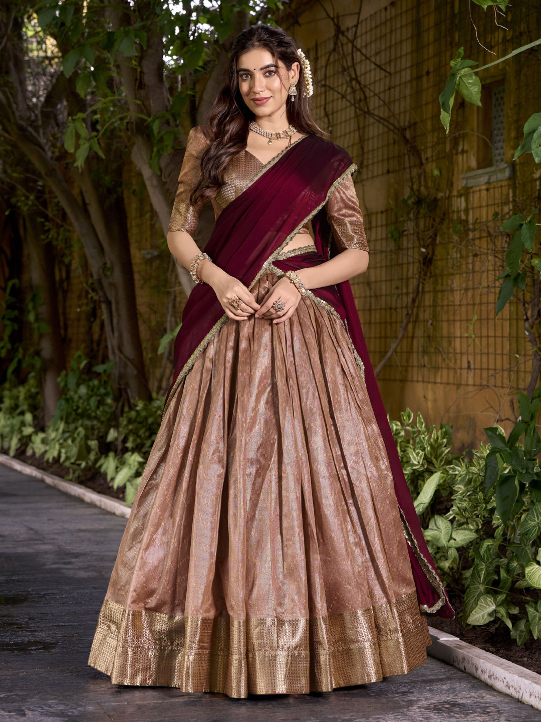 Pink and Majenta color Lehenga in Dupion Silk fabric with Weaving, Zari work