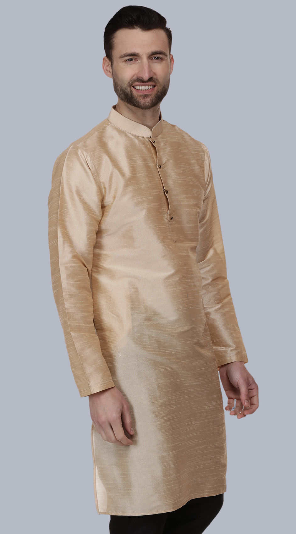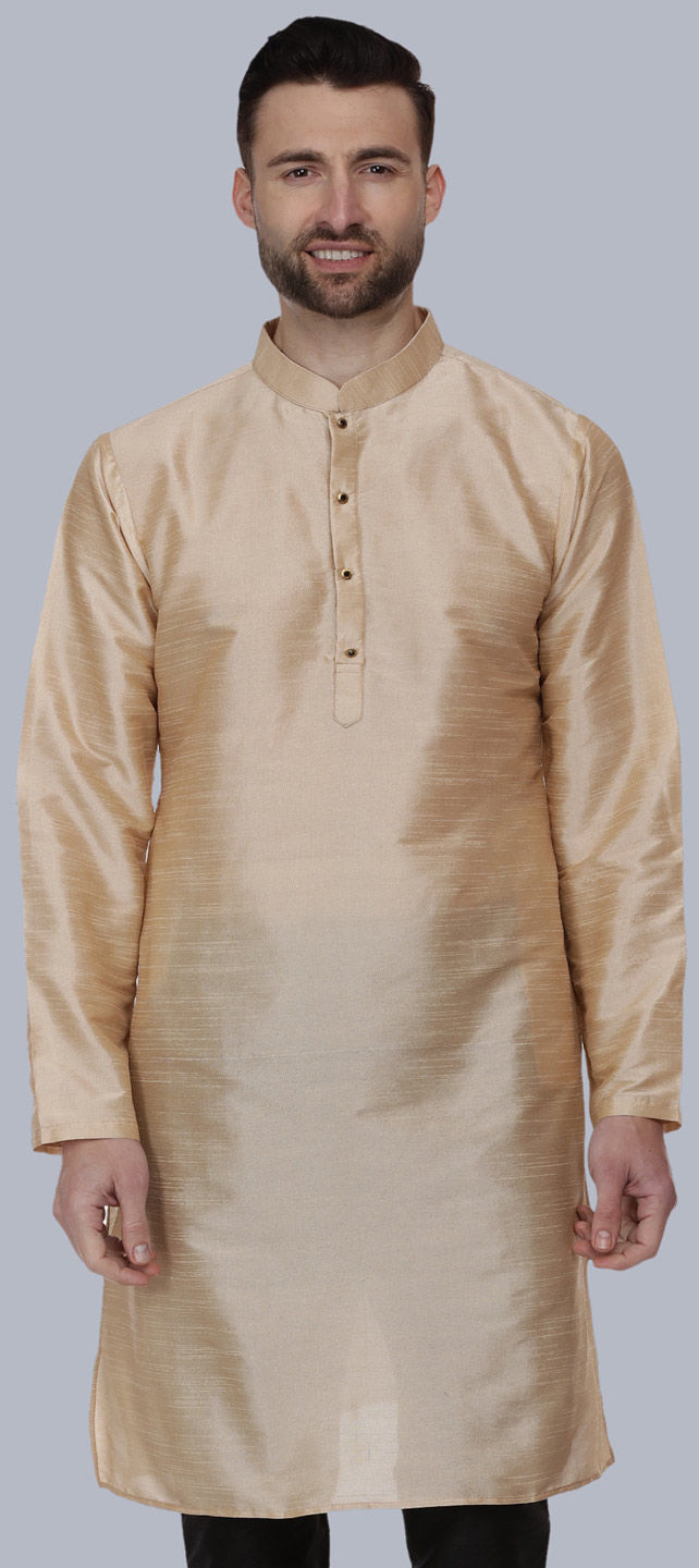Dupion Silk Party Wear Kurta in Gold with Embroidered work