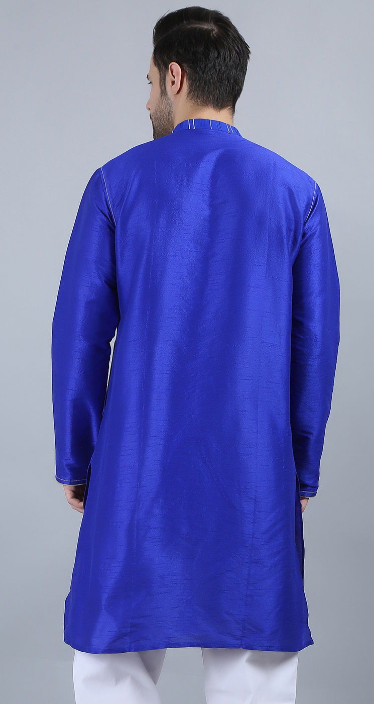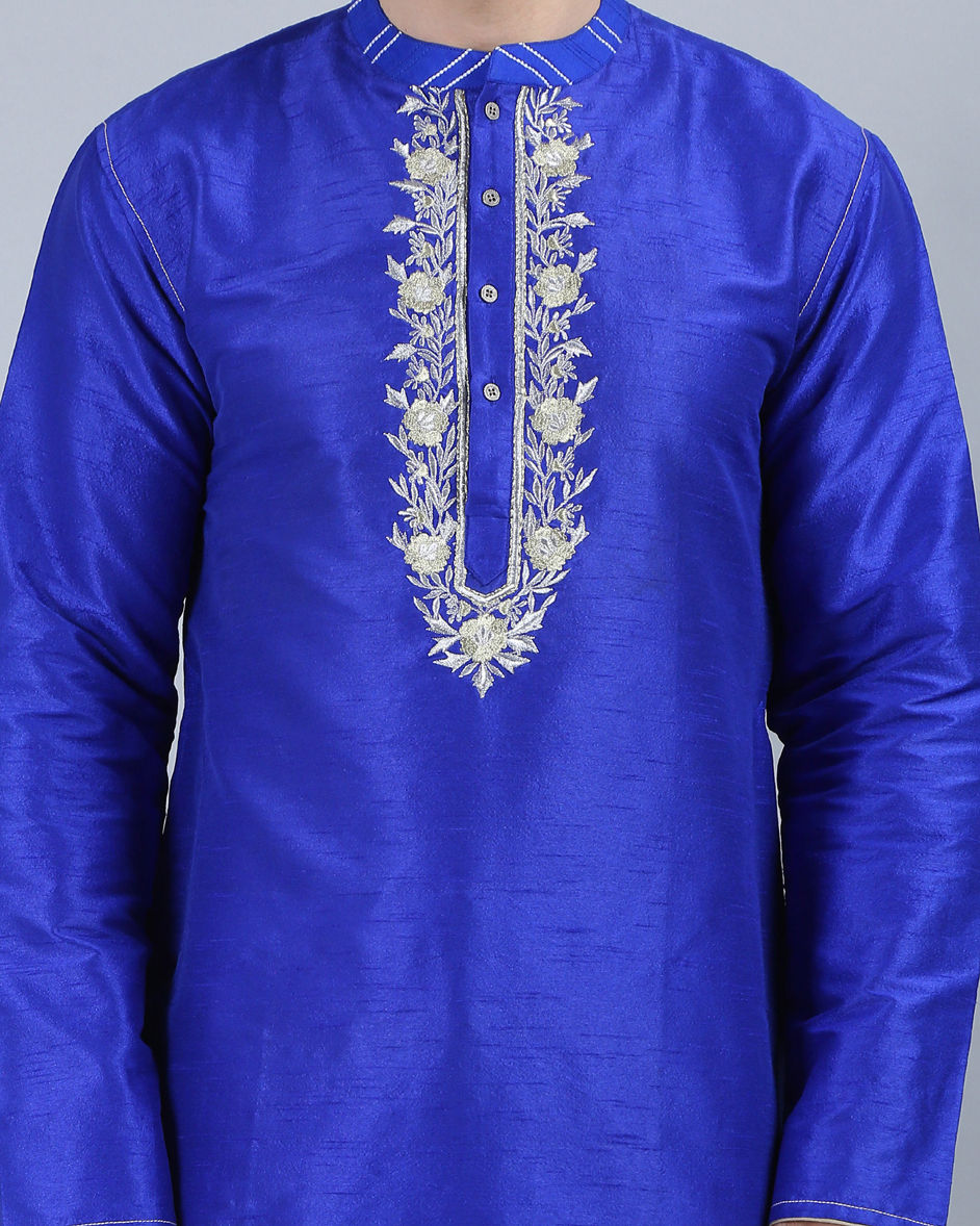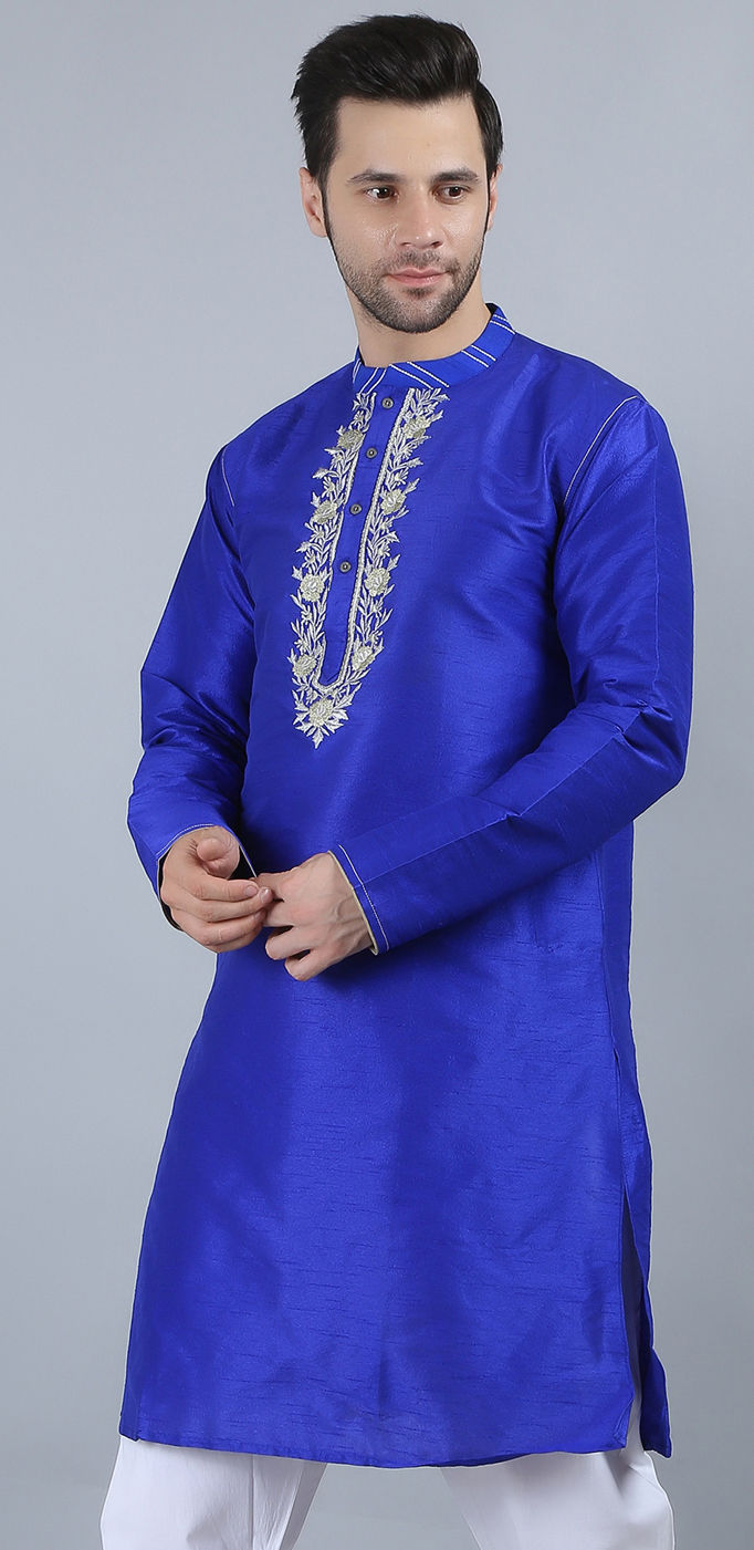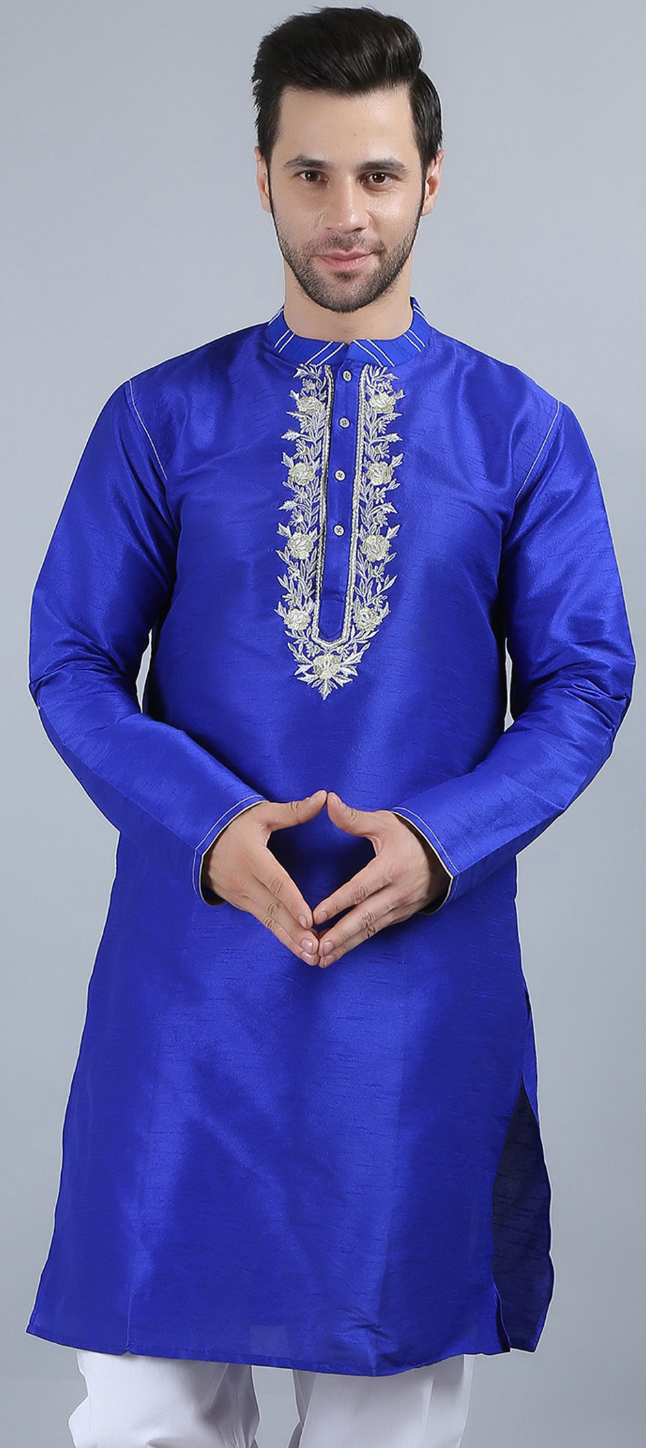 Blue color Kurta in Dupion Silk fabric with Embroidered work