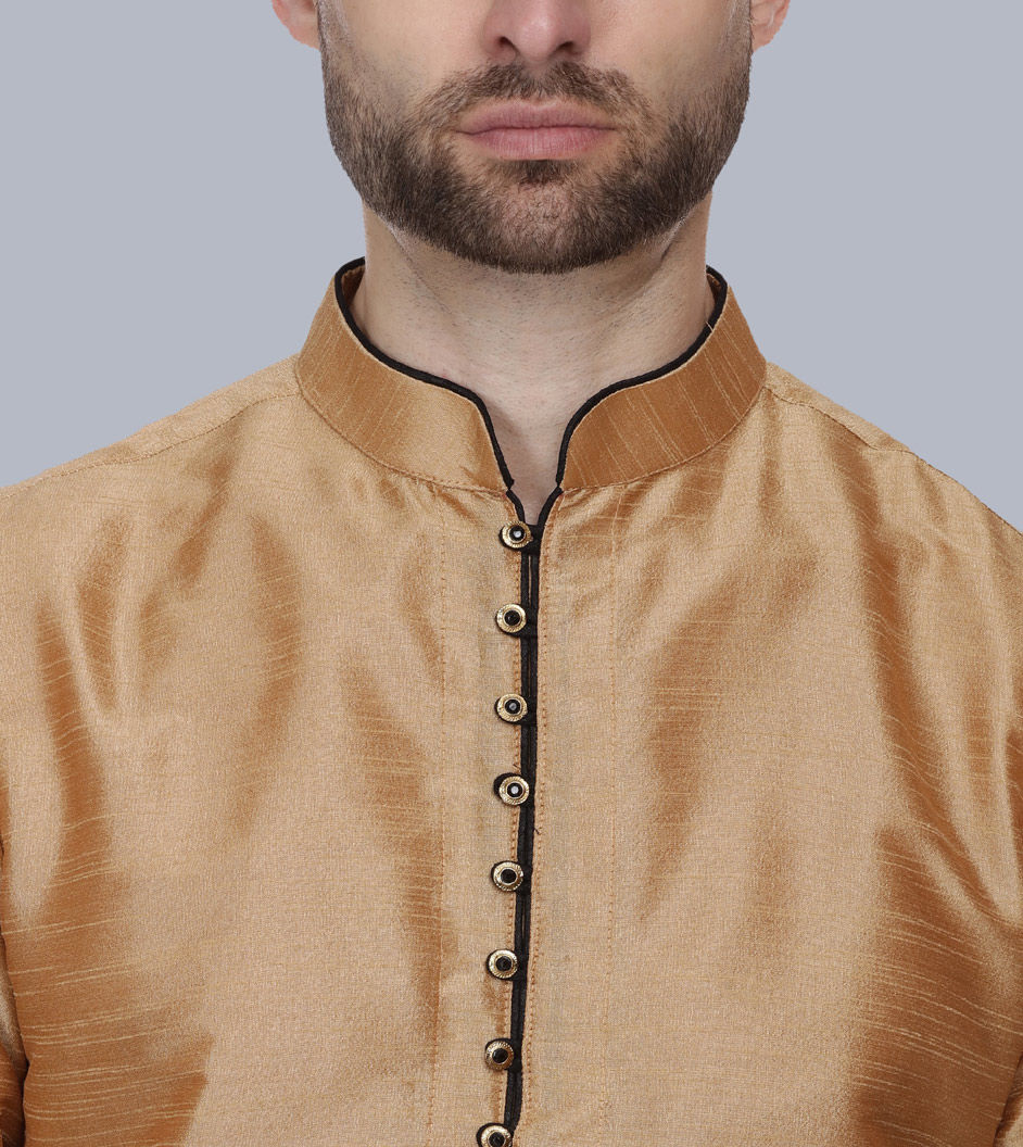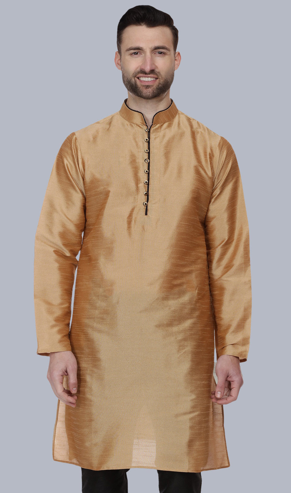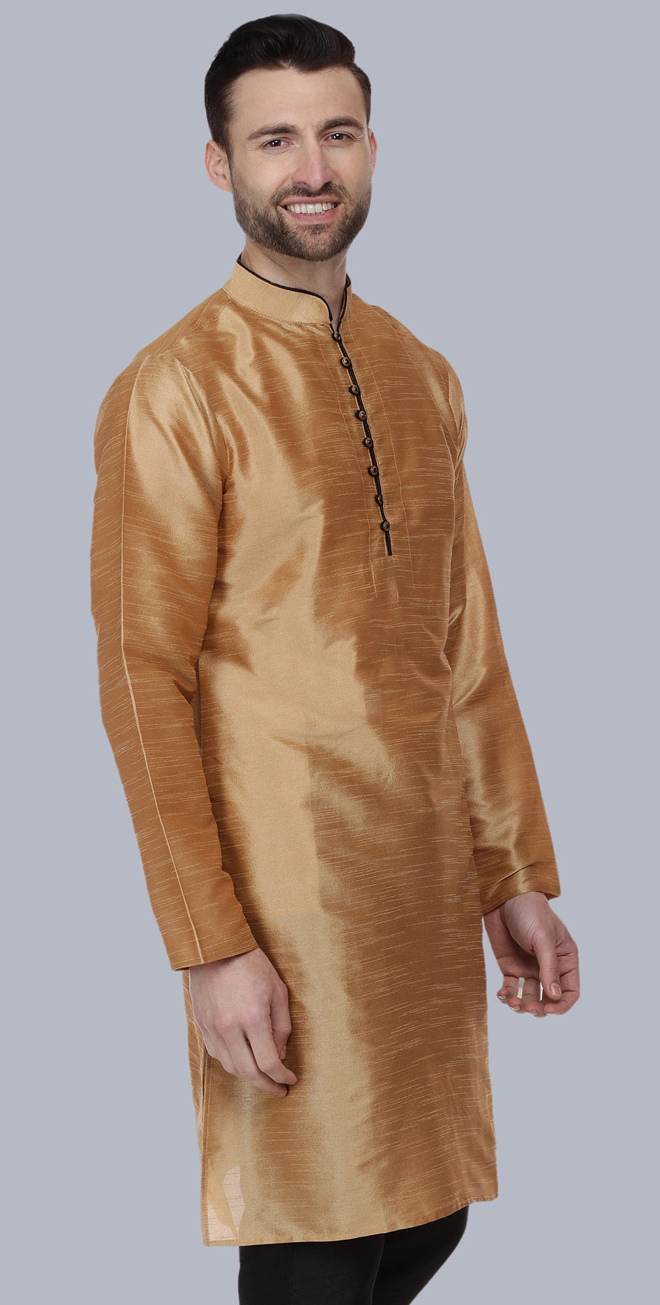 Gold color Kurta in Dupion Silk fabric with Thread work
