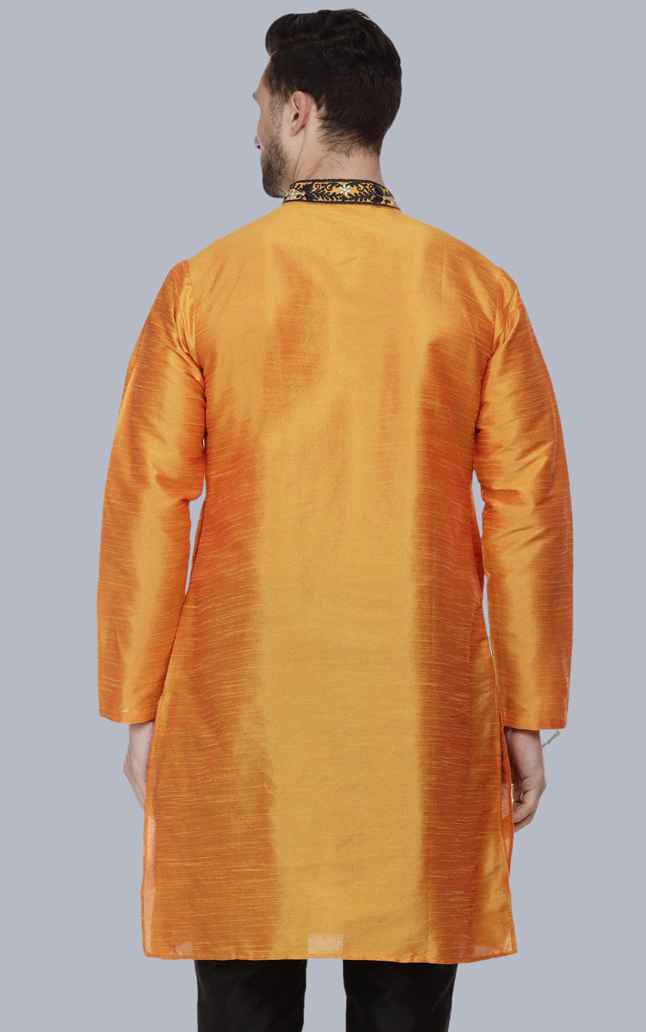 Dupion Silk Party Wear Kurta in Orange with Embroidered work