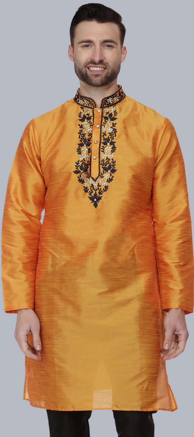 Orange color Kurta in Dupion Silk fabric with Embroidered work