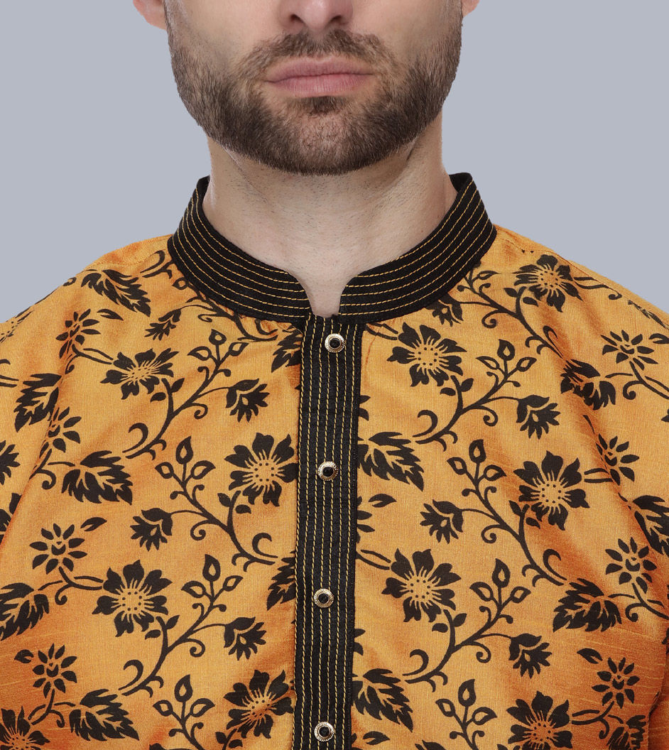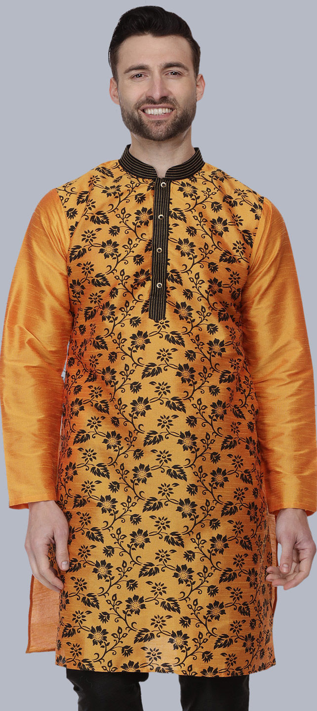 Orange color Kurta in Dupion Silk fabric with Printed work