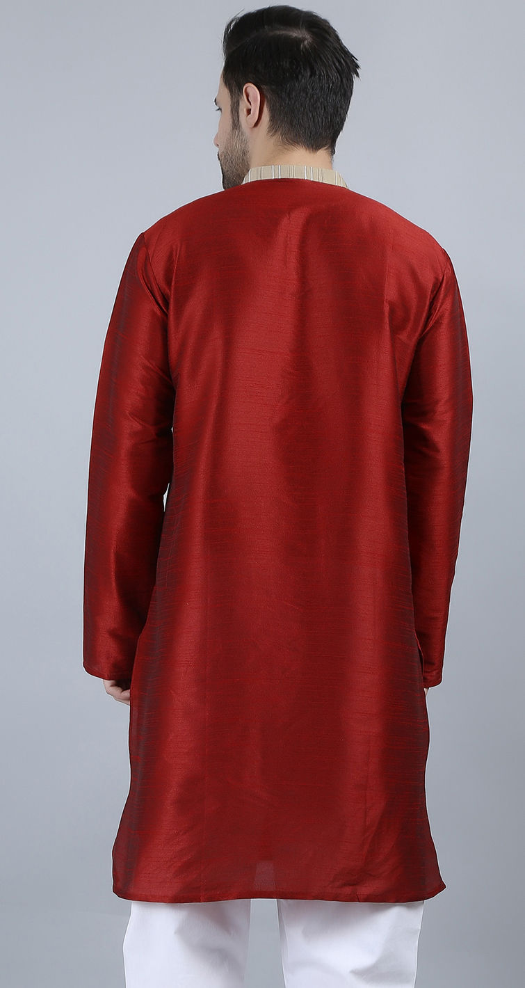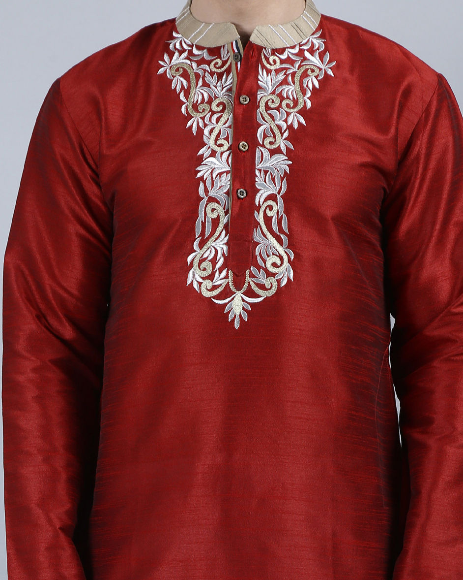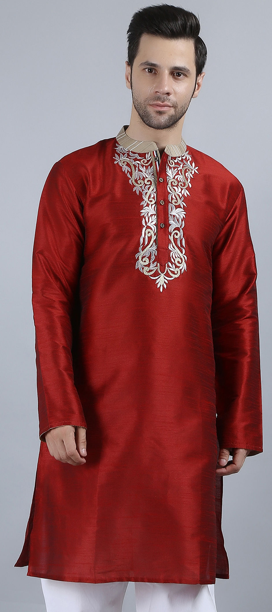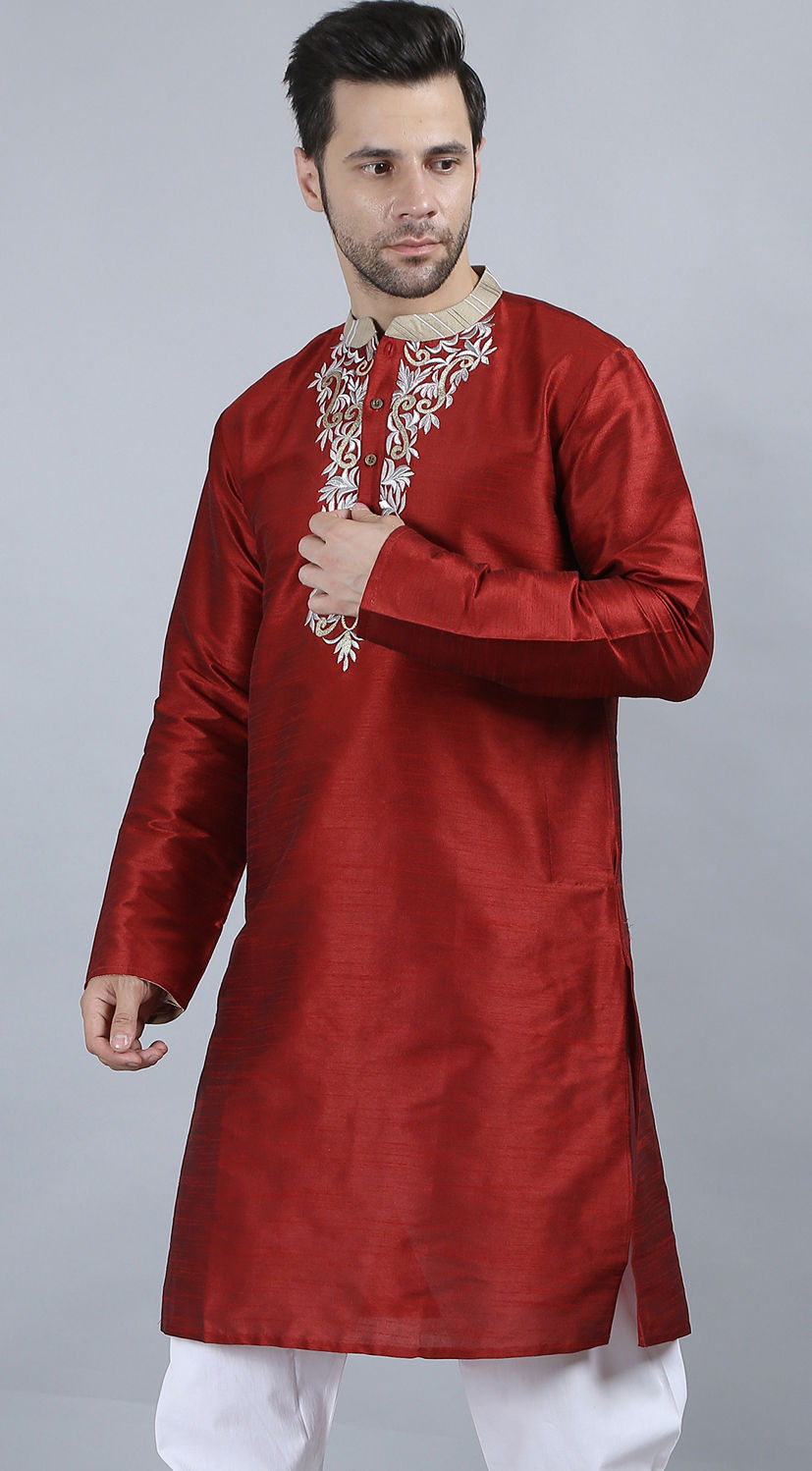 Red and Maroon color Kurta in Dupion Silk fabric with Embroidered work
