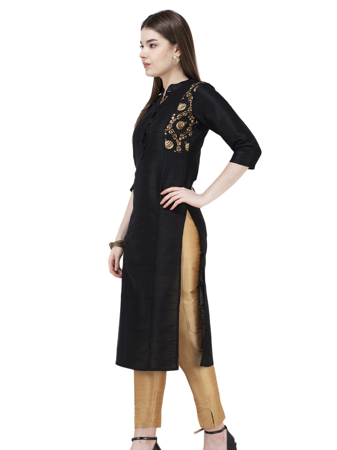 Black and Grey color Salwar Kameez in Dupion Silk fabric with Printed work