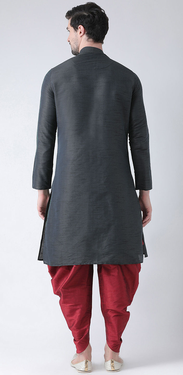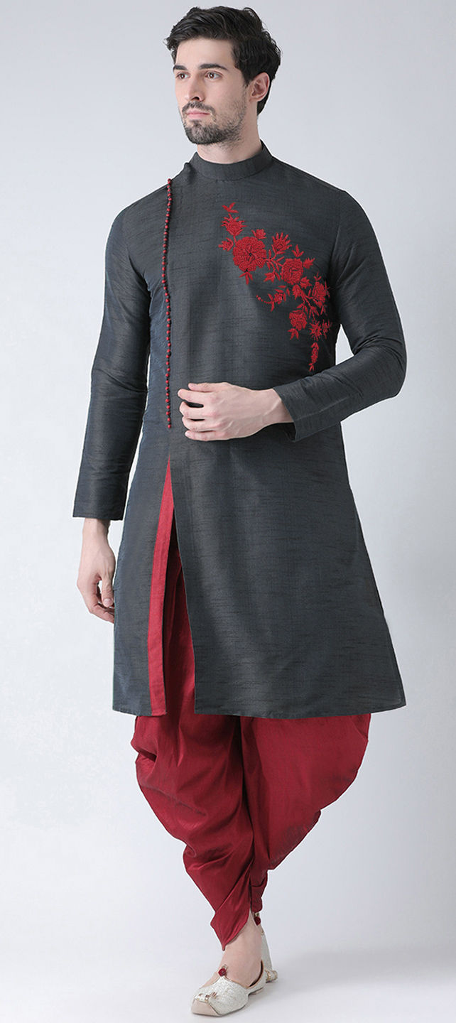 Black and Grey color IndoWestern Dress in Dupion Silk fabric with Embroidered, Thread work