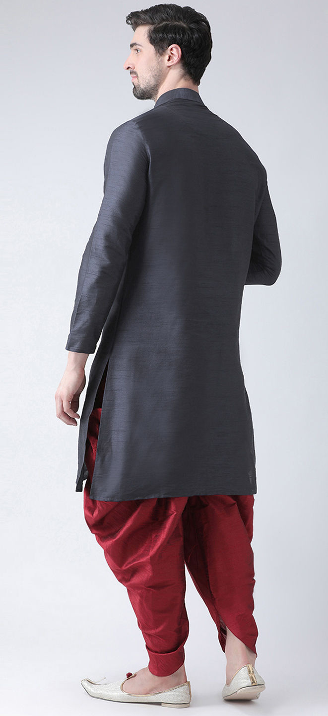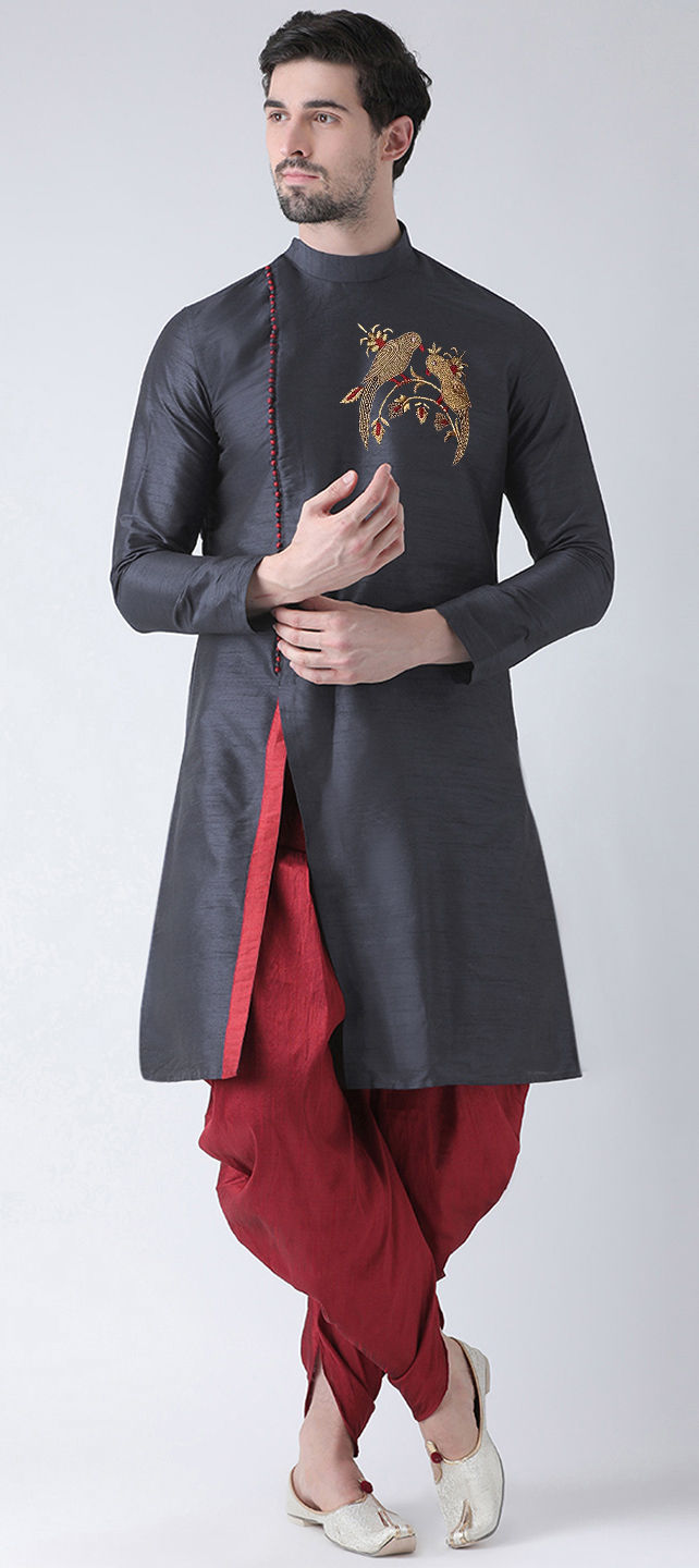 Black and Grey color IndoWestern Dress in Dupion Silk fabric with Embroidered, Thread work