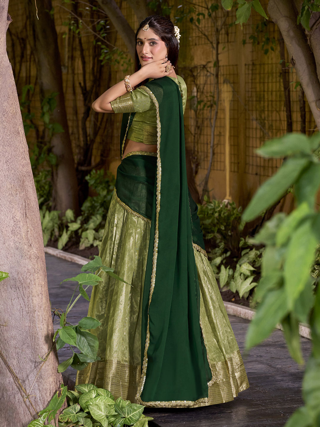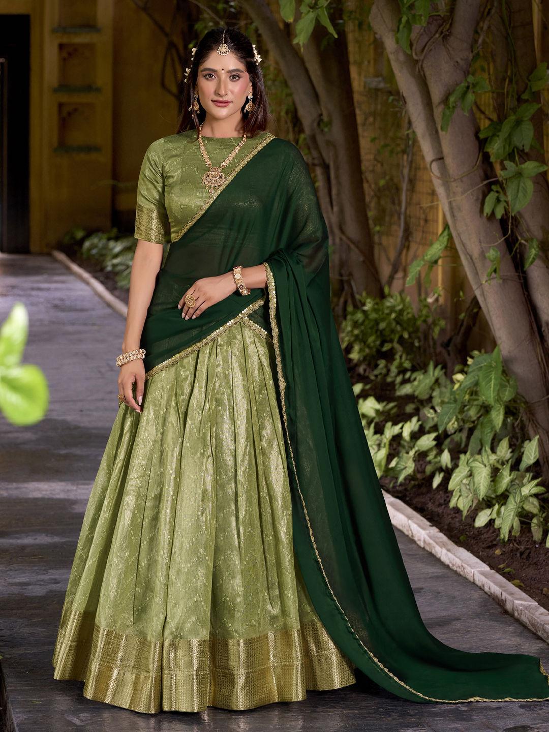 Green color Lehenga in Dupion Silk fabric with Weaving, Zari work