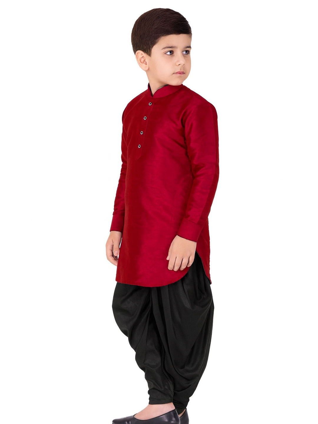 Red and Maroon color Boys Dhoti Kurta in Dupion Silk fabric with Thread work
