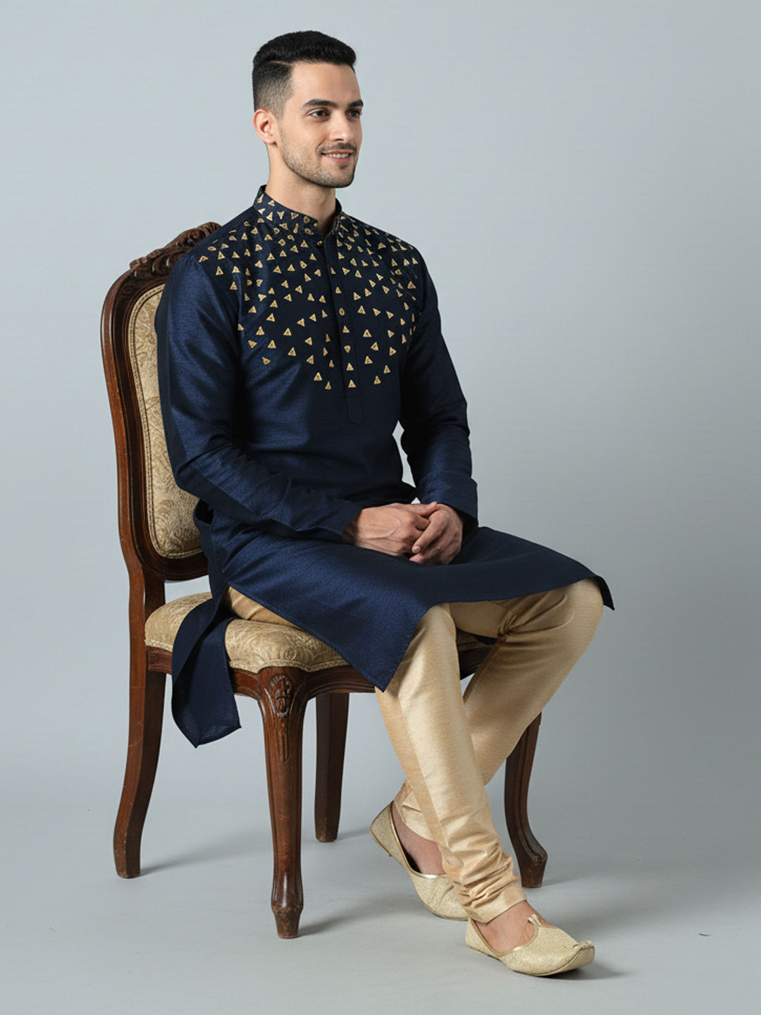Dupion Silk Festive Kurta Pyjamas in Blue with Embroidered work