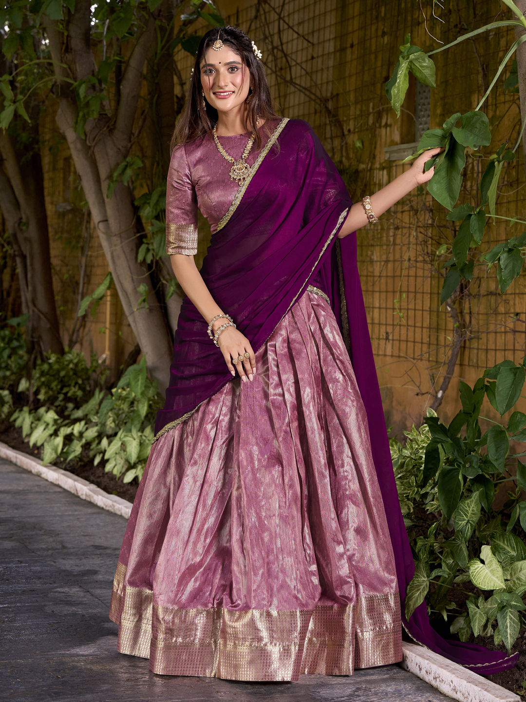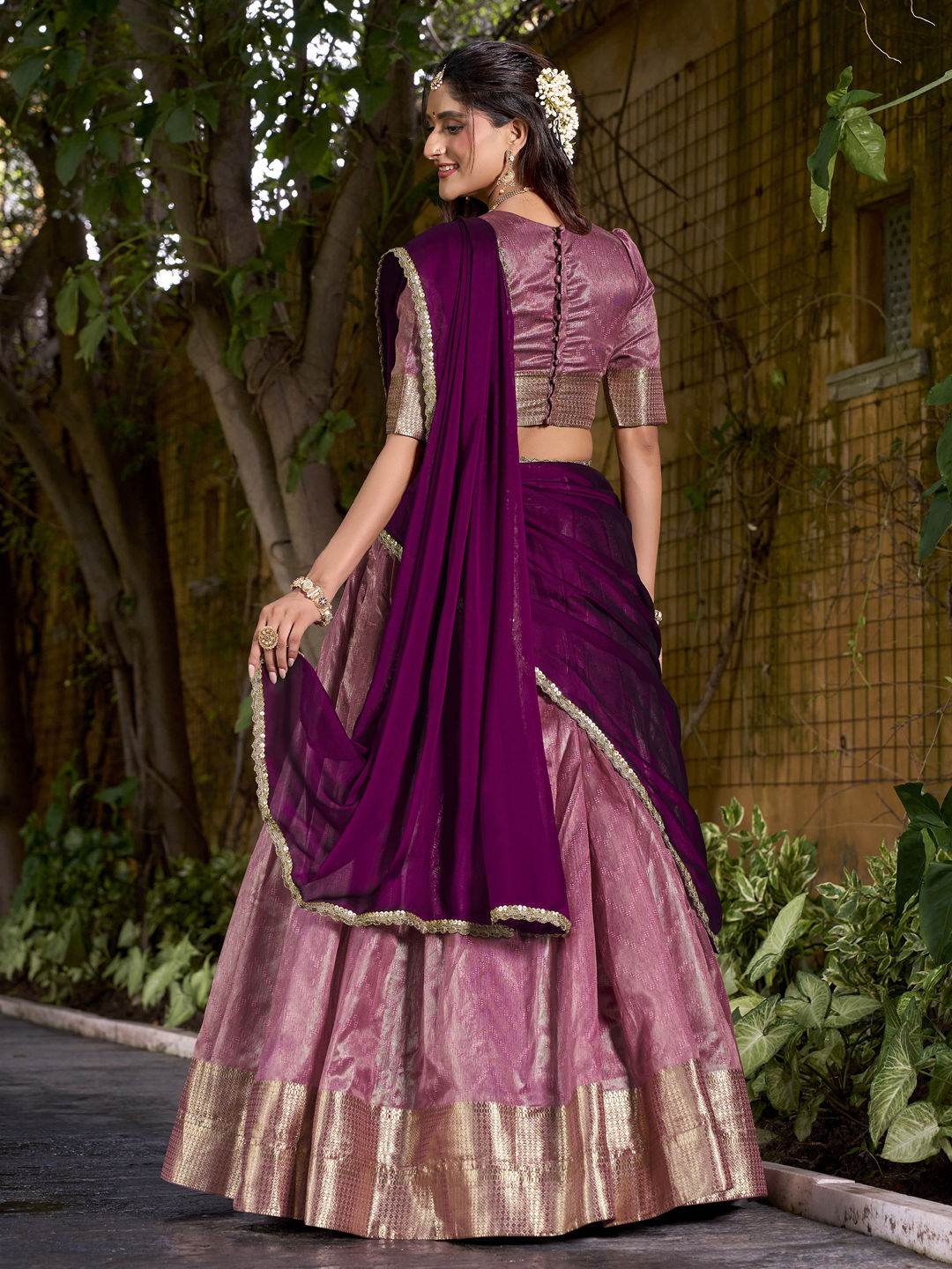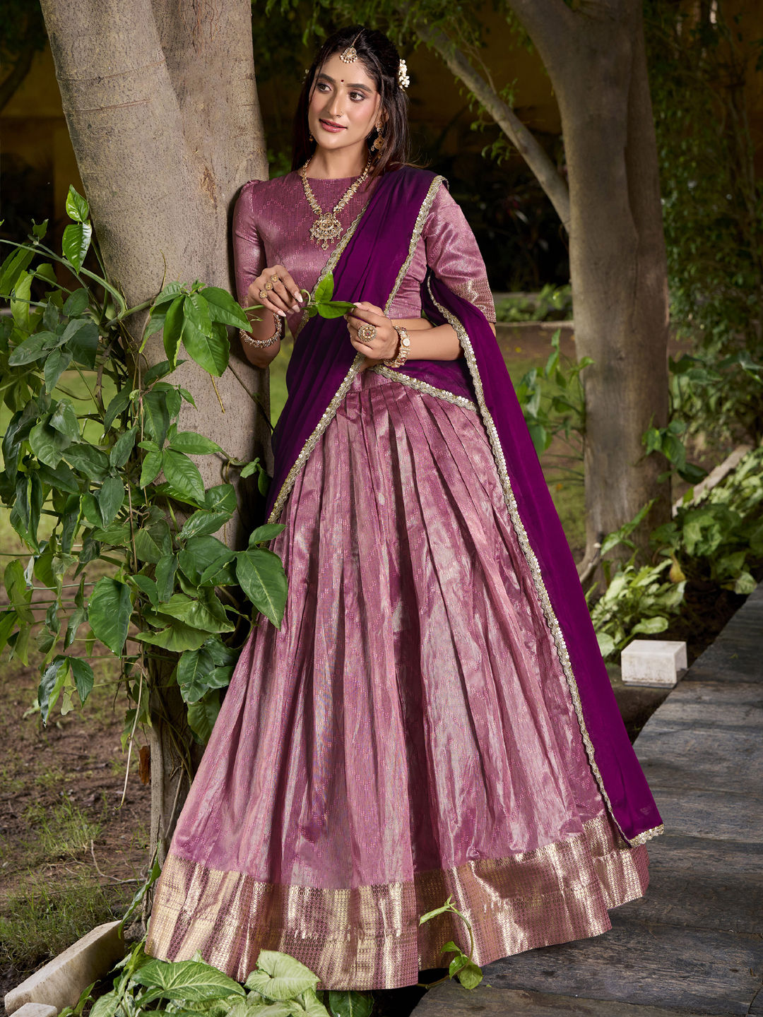 Dupion Silk Festive Lehenga in Pink and Majenta with Weaving work