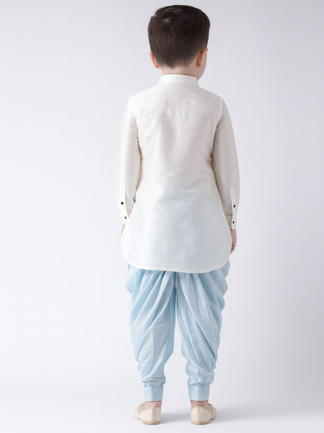 White and Off White color Boys Indo-Western in Dupion Silk fabric with Thread work