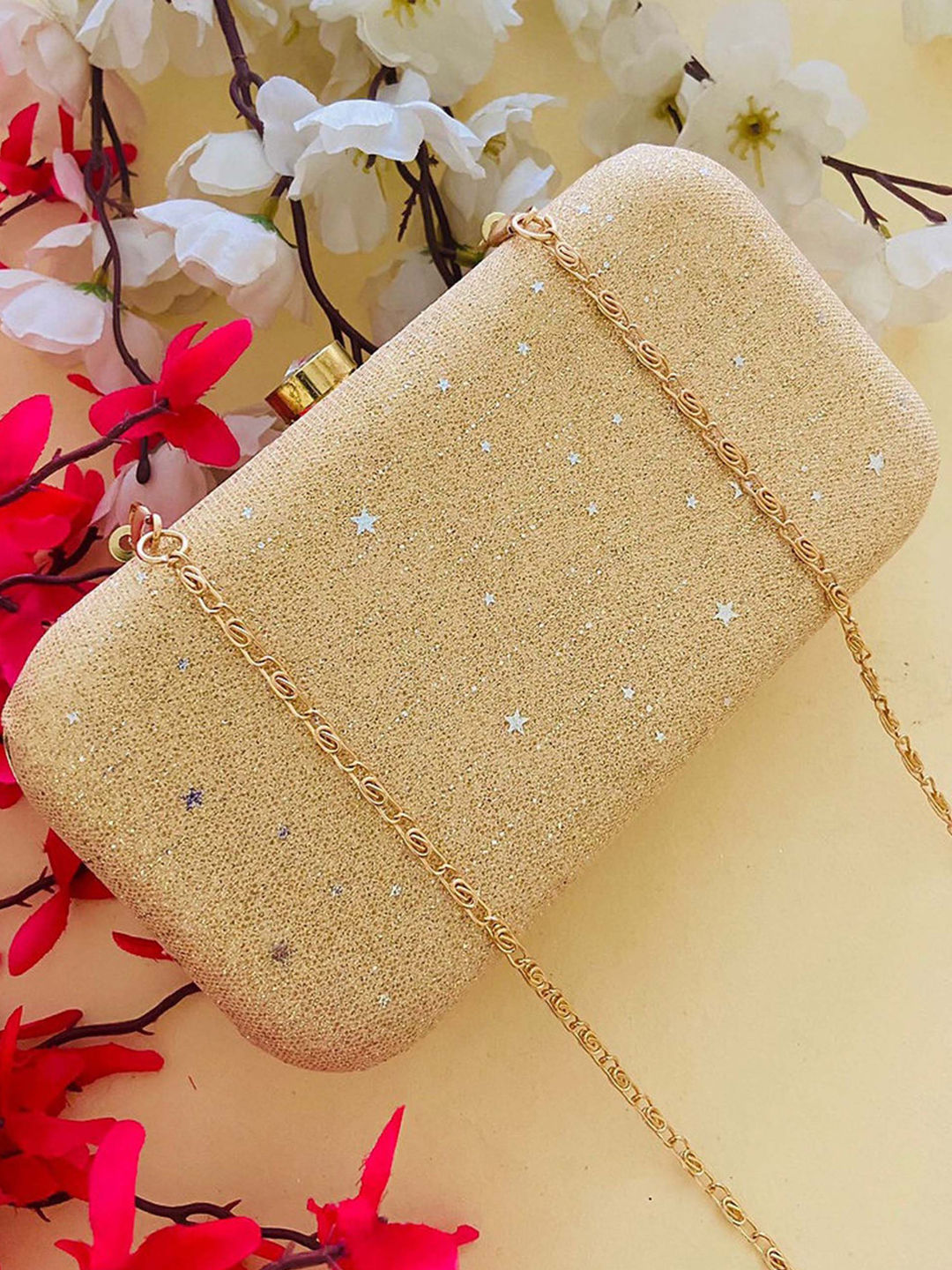 Gold color Clutches in Fancy Fabric fabric with Gota Patti work
