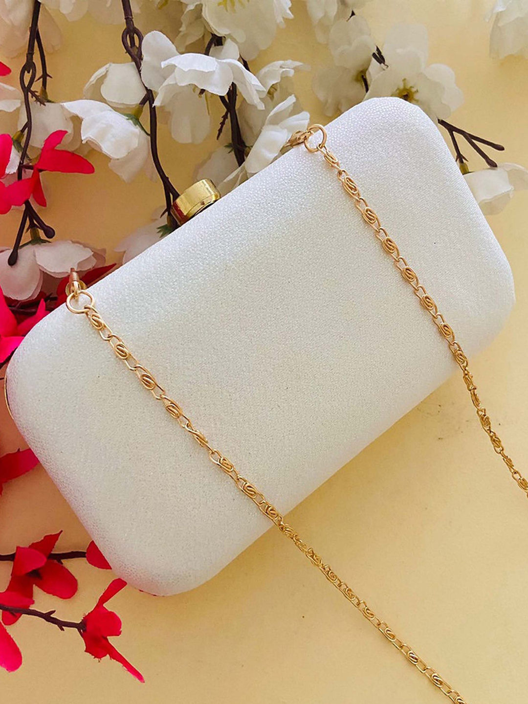 White and Off White color Clutches in Fancy Fabric fabric with Embroidered work