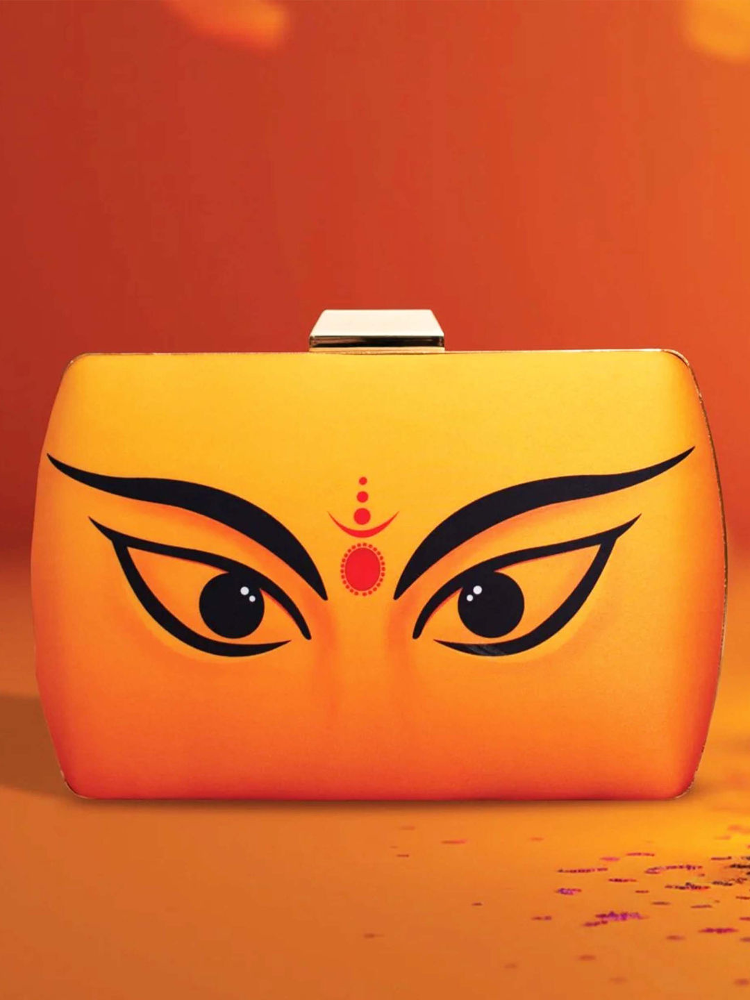 Yellow color Clutches in Fancy Fabric fabric with Printed work