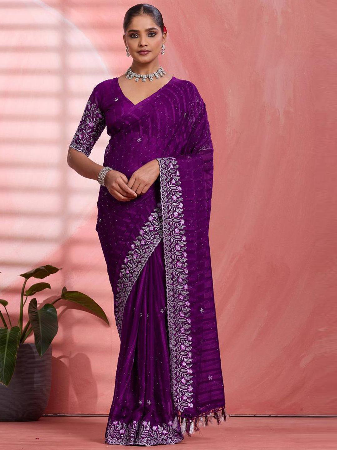 Purple and Violet color Saree in Faux Chiffon fabric with Embroidered, Thread work