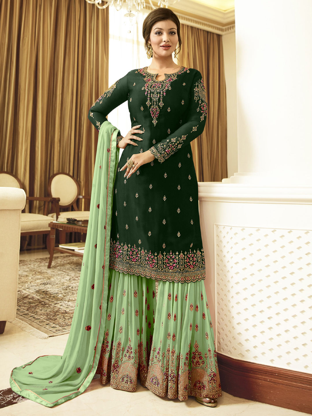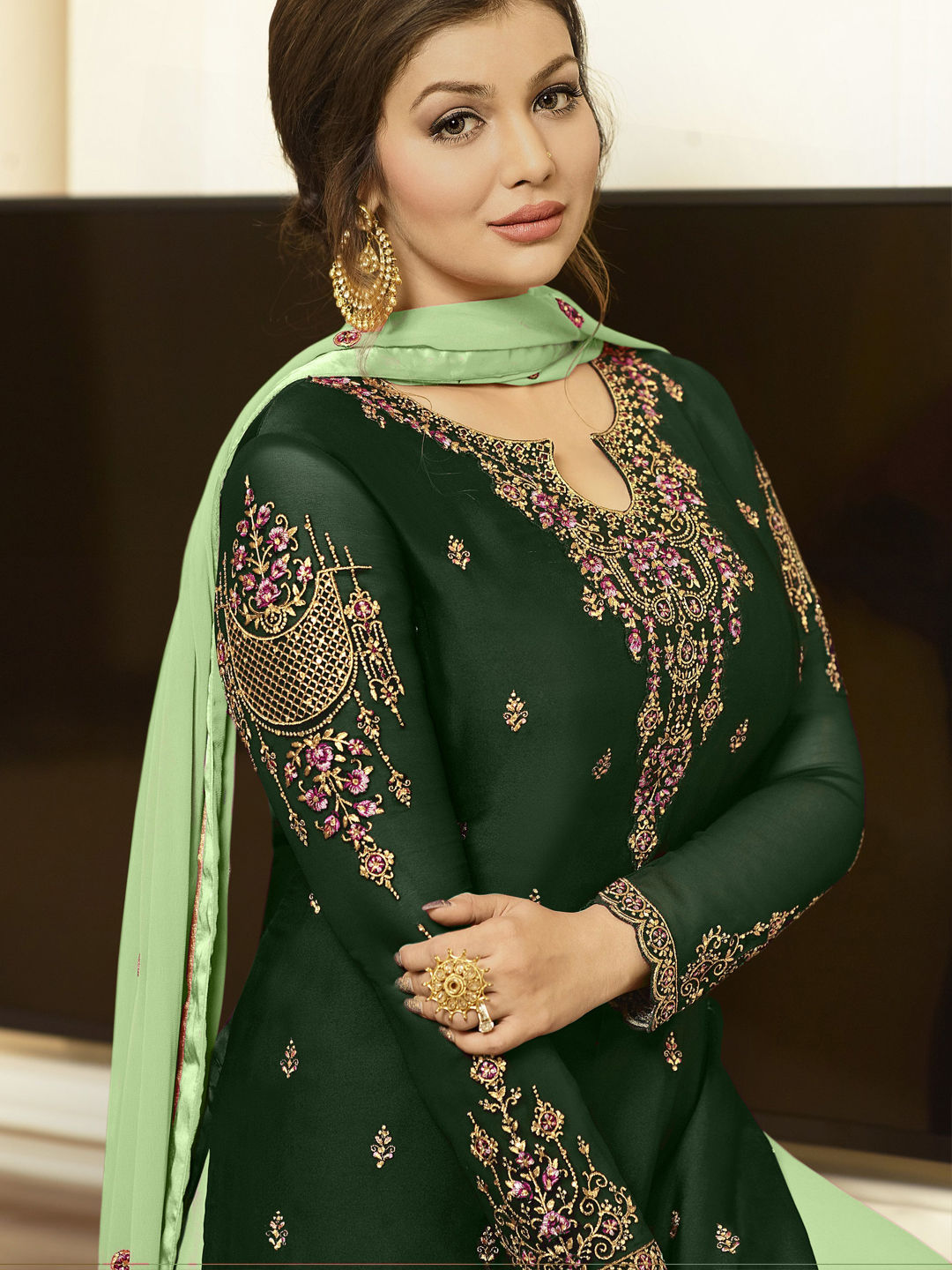 Green color Salwar Kameez in Faux Georgette fabric with Embroidered, Resham work