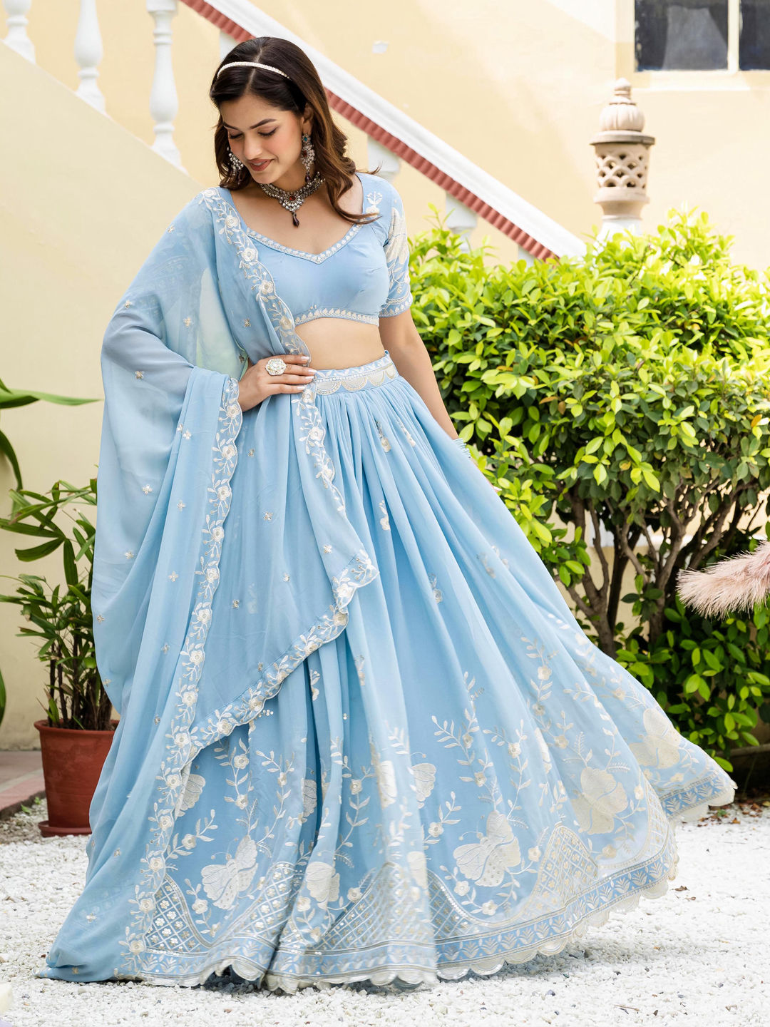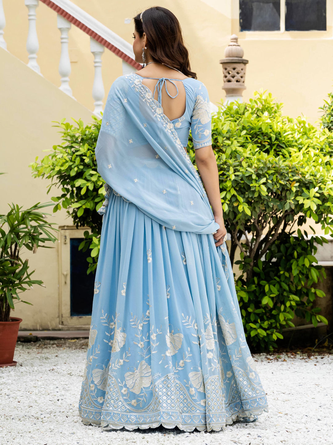 Blue color Lehenga in Faux Georgette fabric with Embroidered, Sequence, Thread work