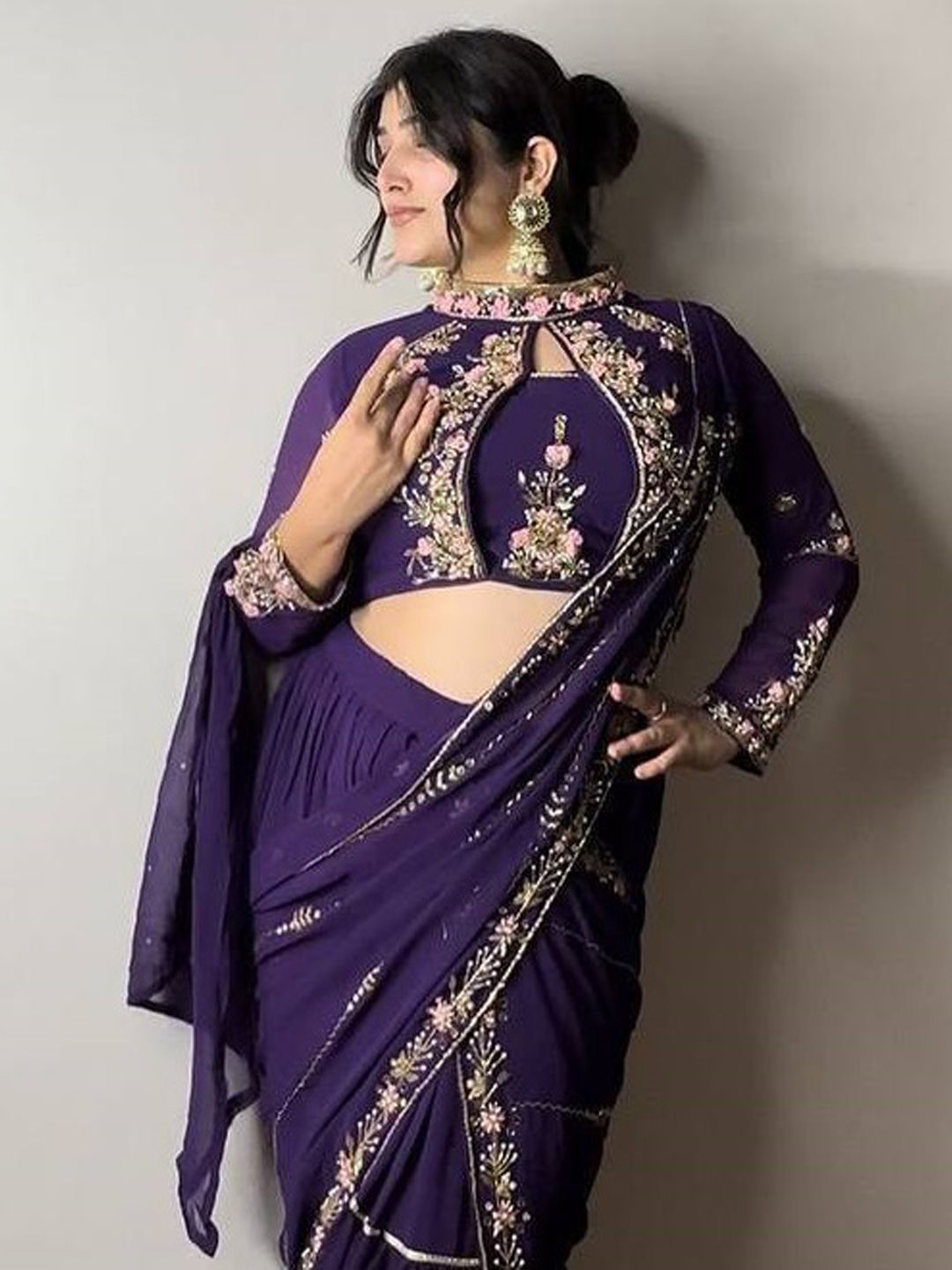 Purple and Violet color Ready to Wear Lehenga in Faux Georgette fabric with Embroidered, Mirror, Sequence, Thread work