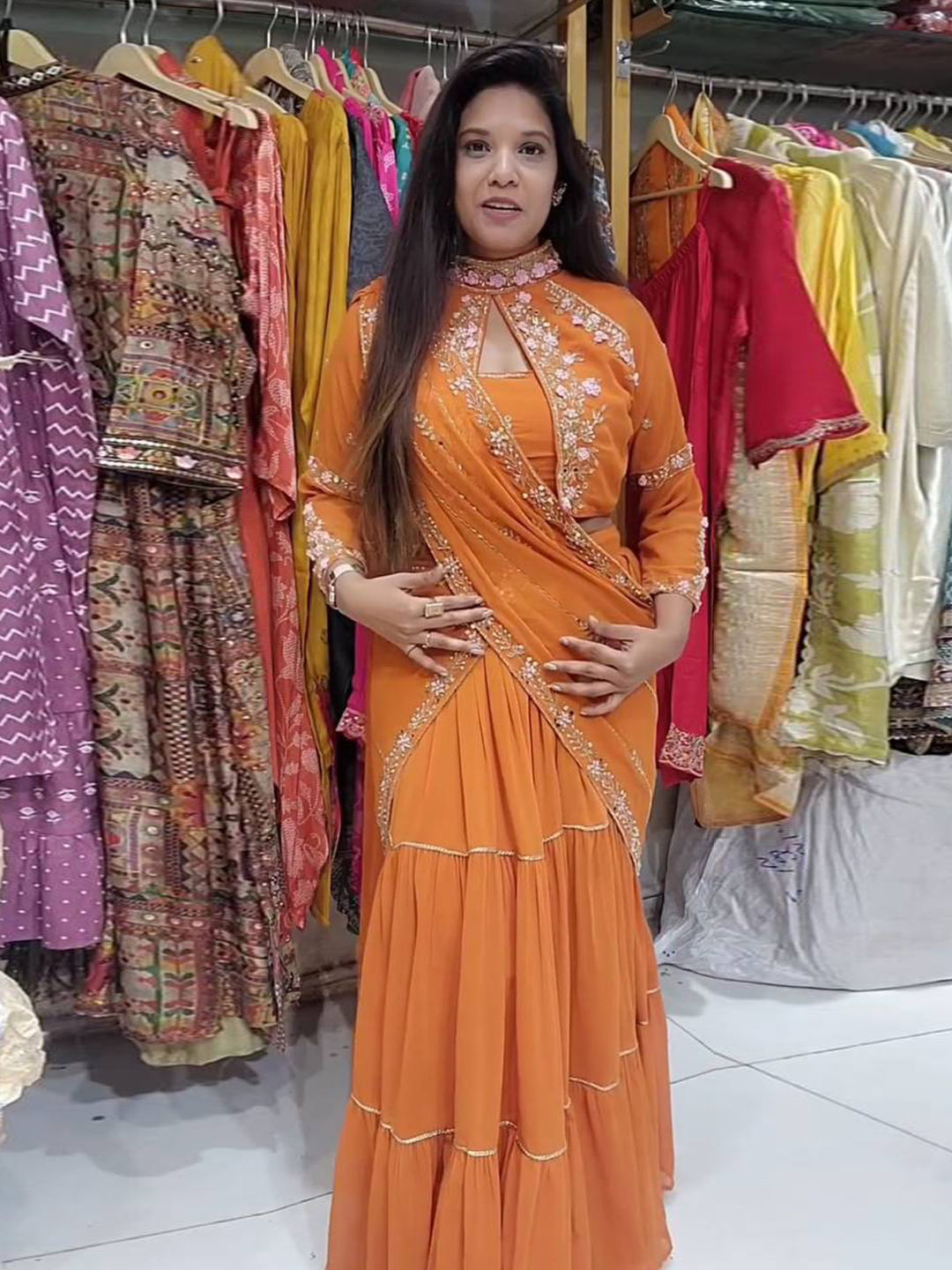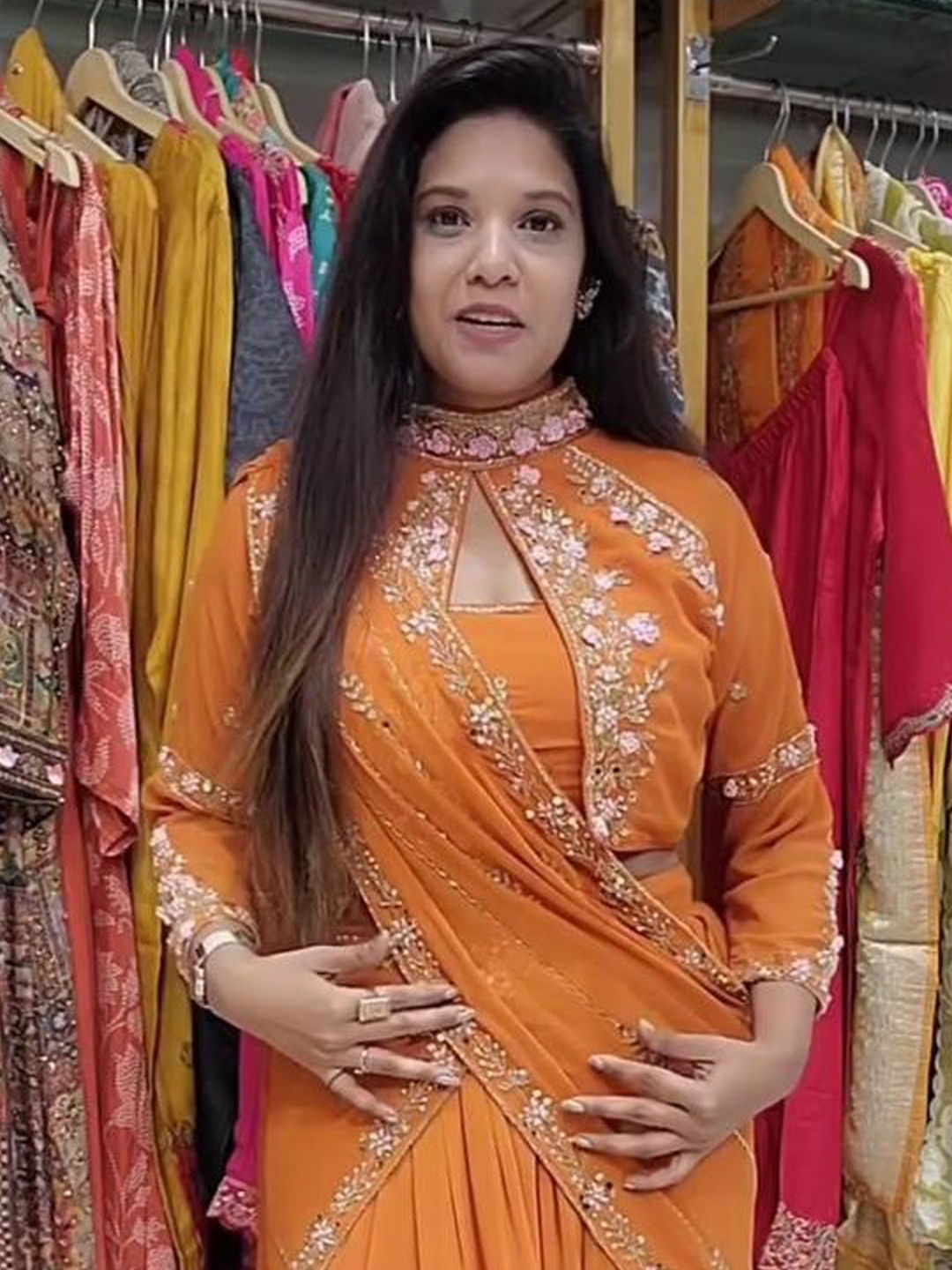 Yellow color Ready to Wear Lehenga in Faux Georgette fabric with Embroidered, Mirror, Sequence, Thread work