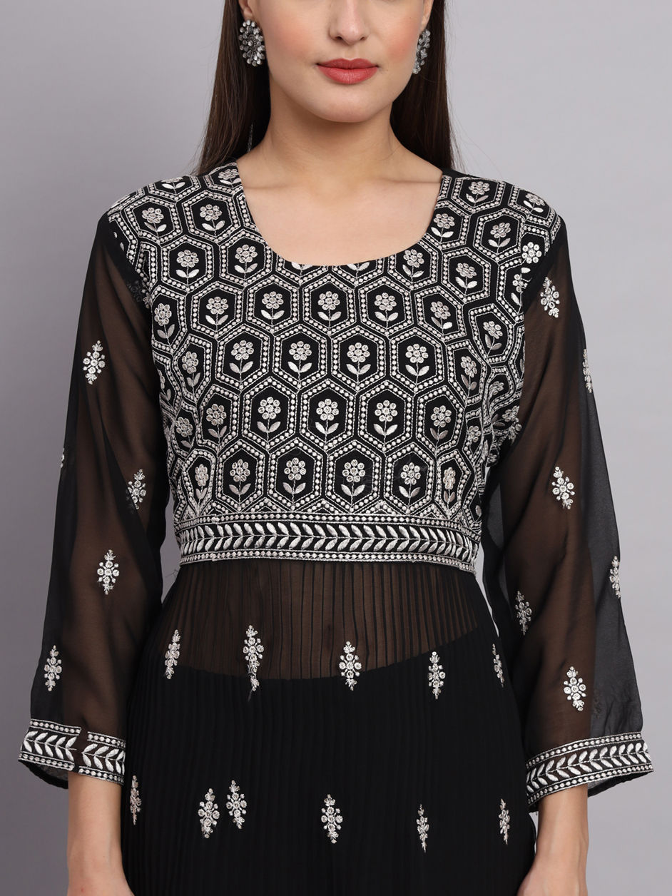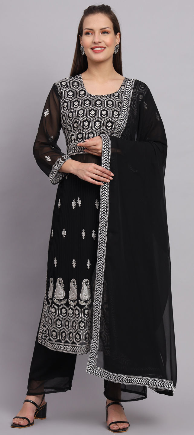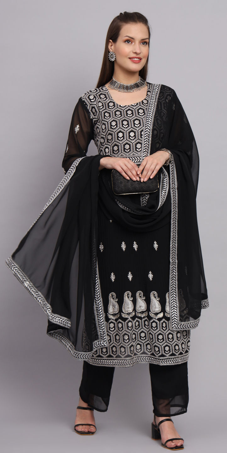 Black and Grey color Salwar Kameez in Faux Georgette fabric with Embroidered, Resham, Sequence, Thread work
