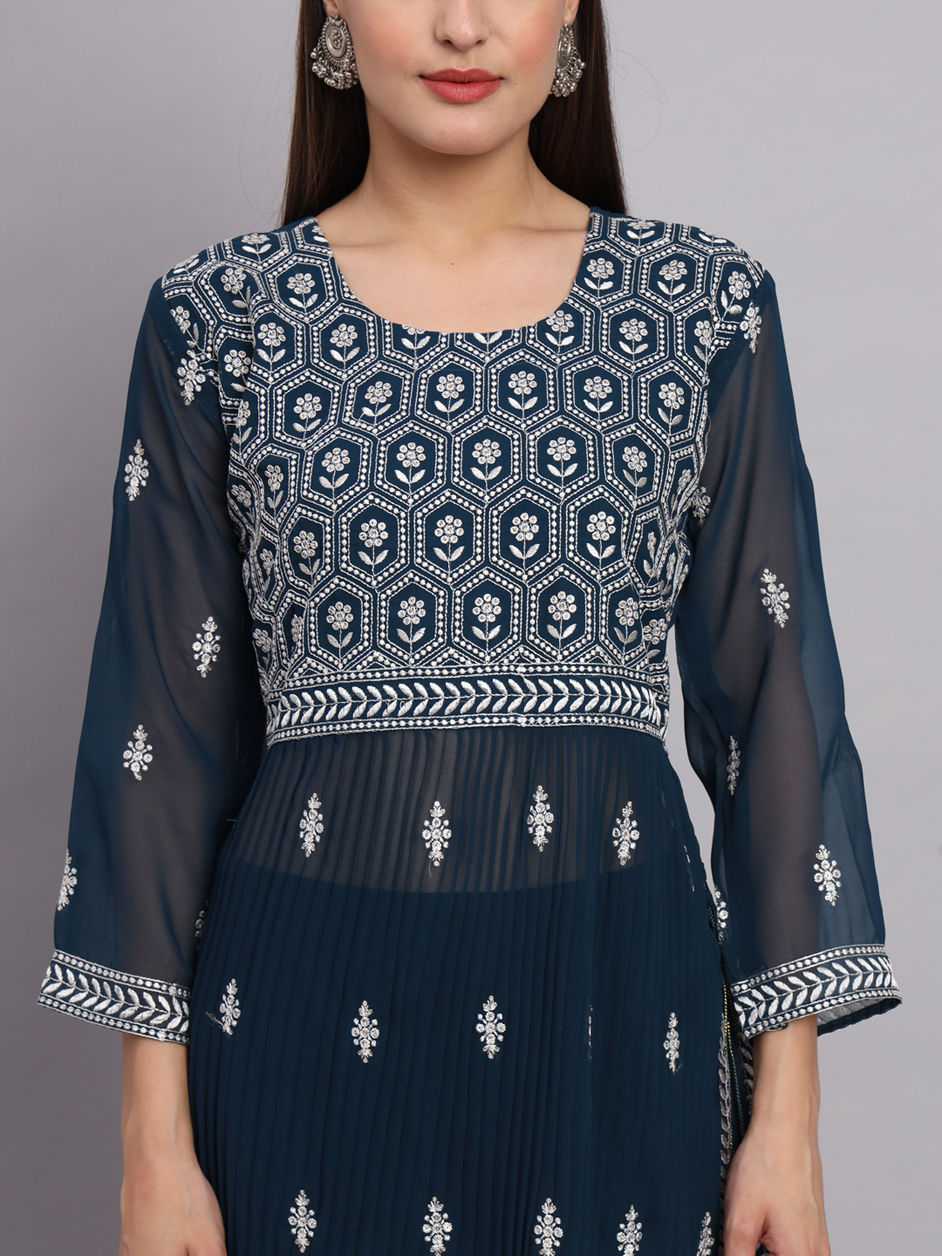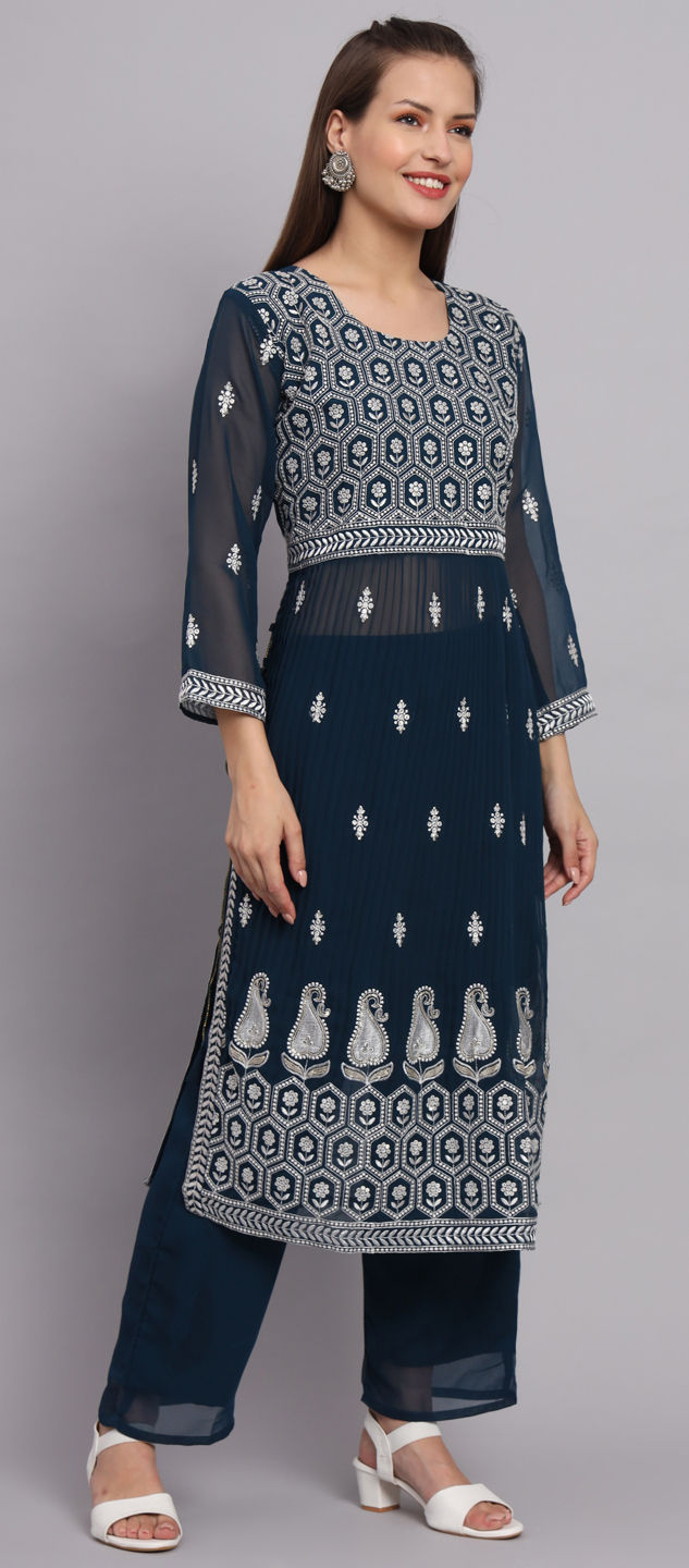 Blue color Salwar Kameez in Faux Georgette fabric with Embroidered, Resham, Sequence, Thread work